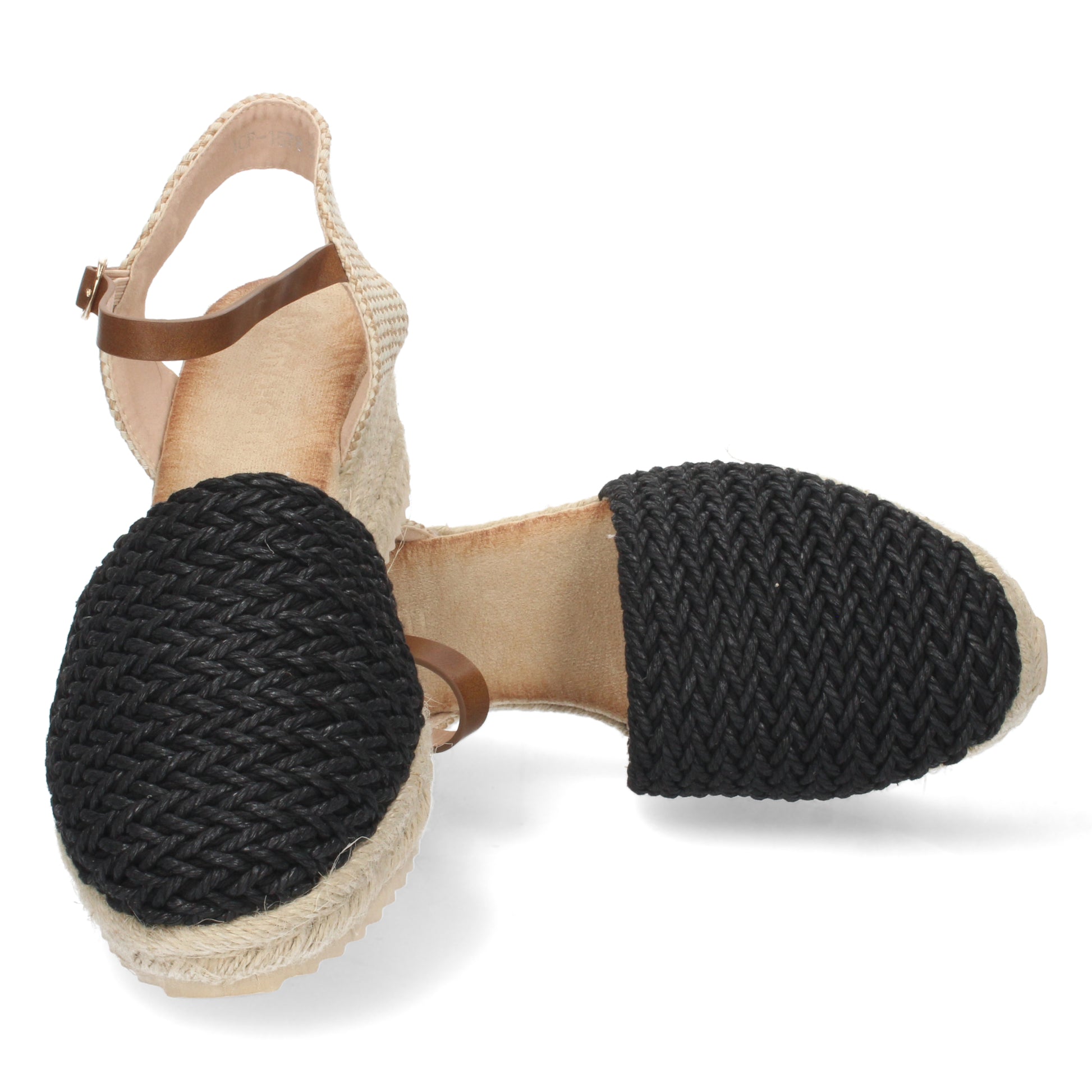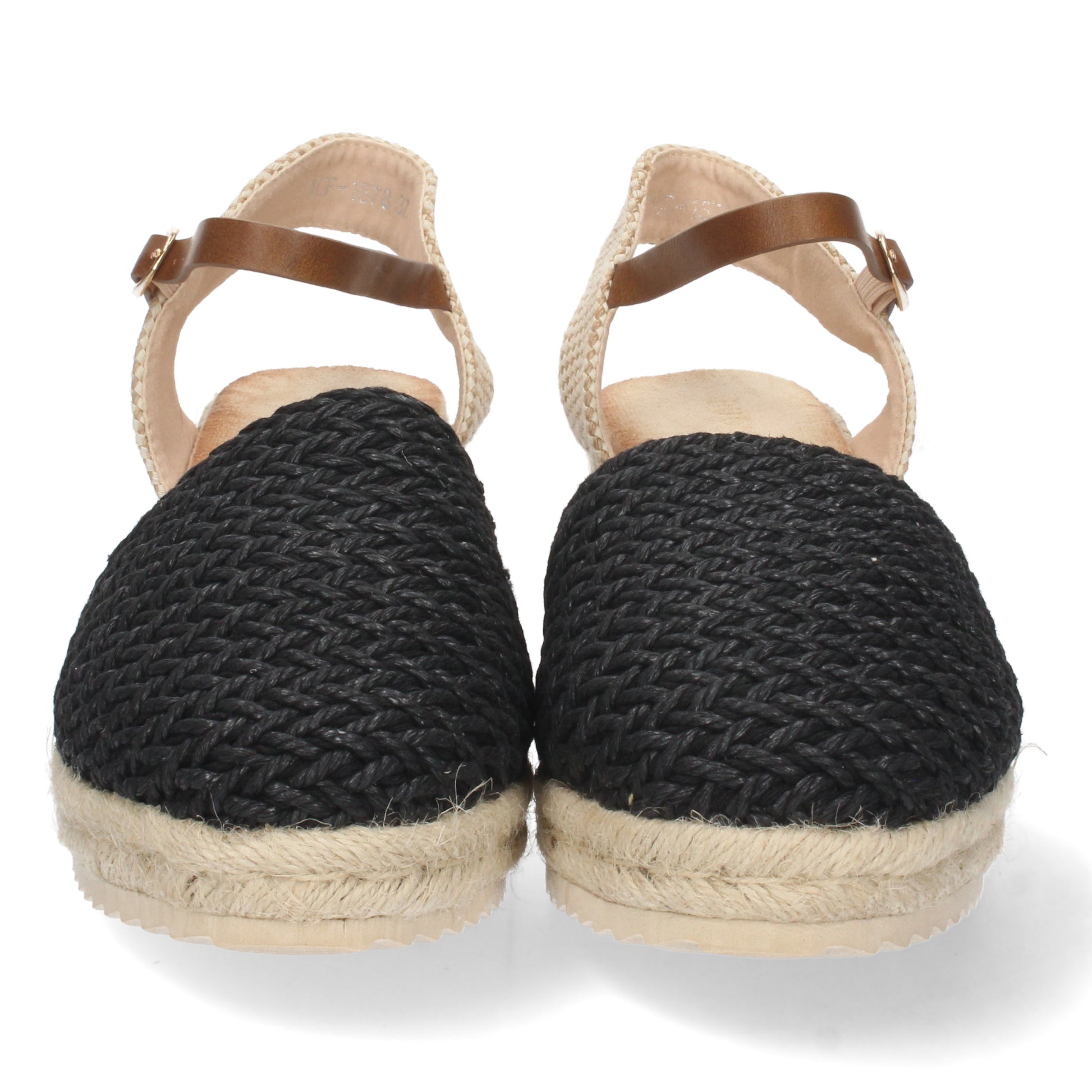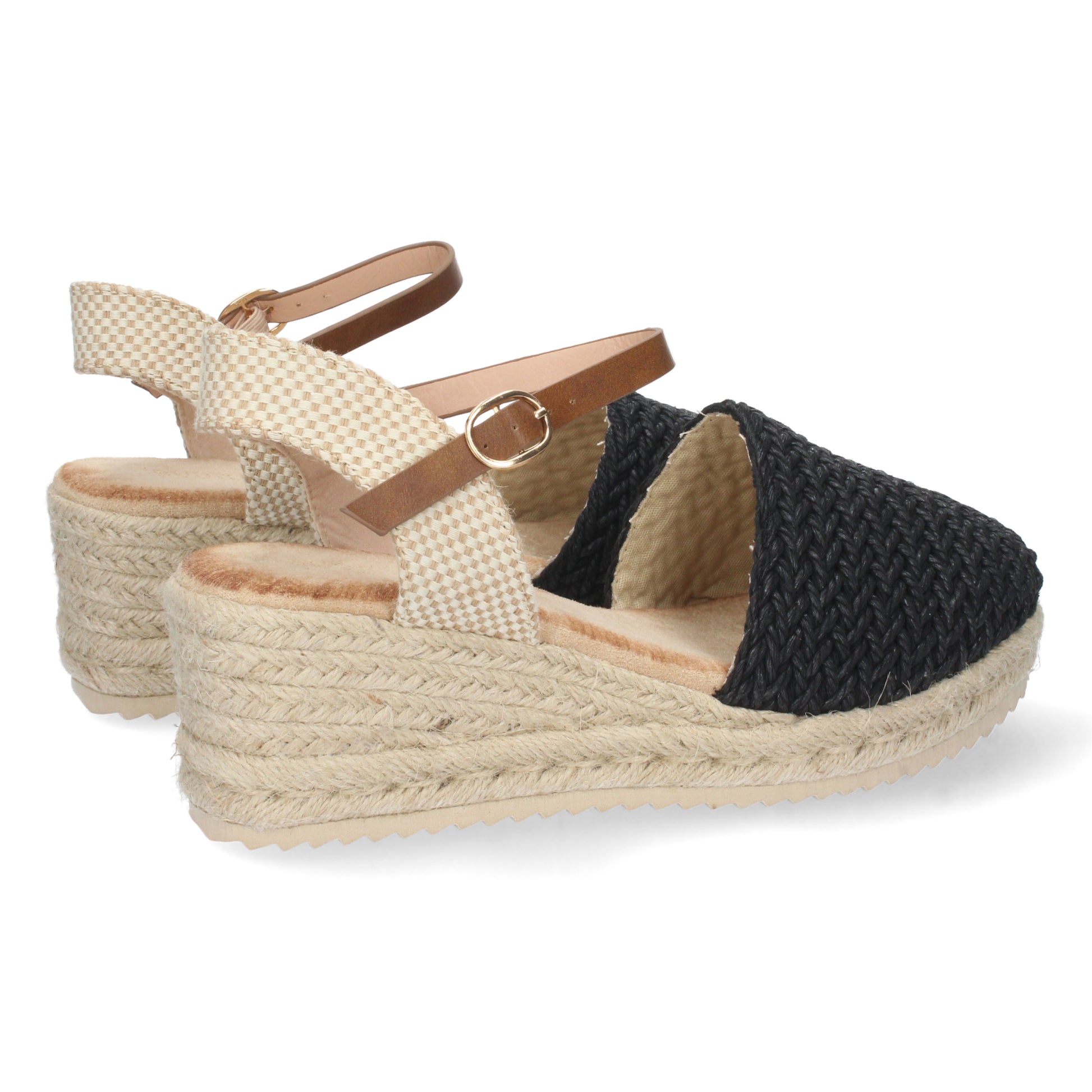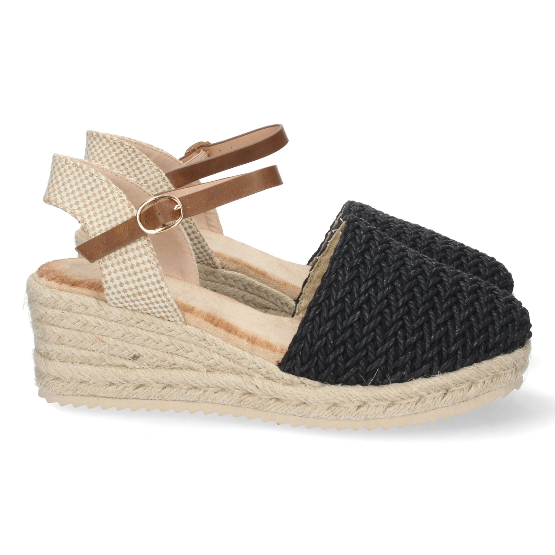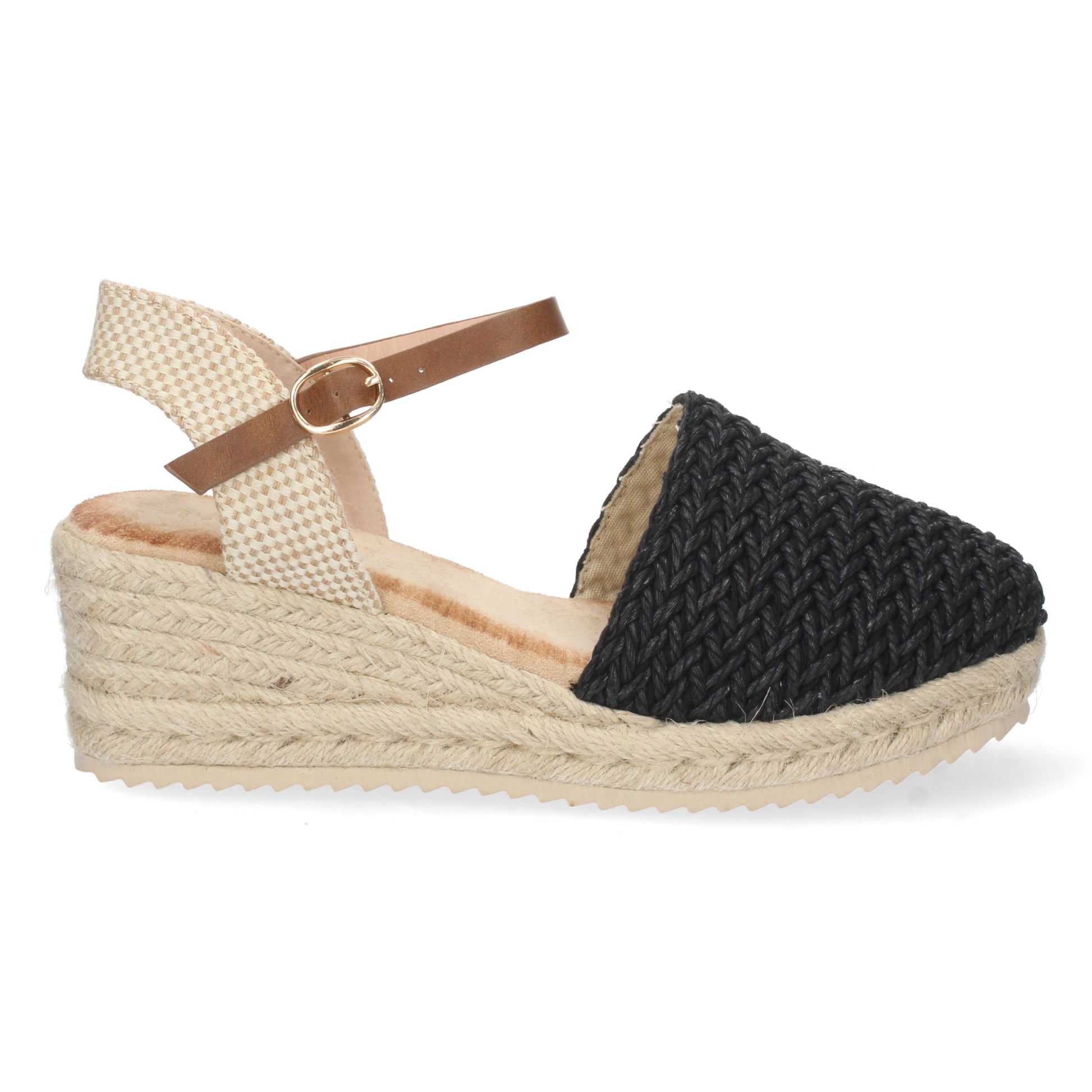 Sandalia de Cuña para Mujer Forrada de Yute con Pala Cerrada de Rafia y Cierre de Hebilla Primavera Verano