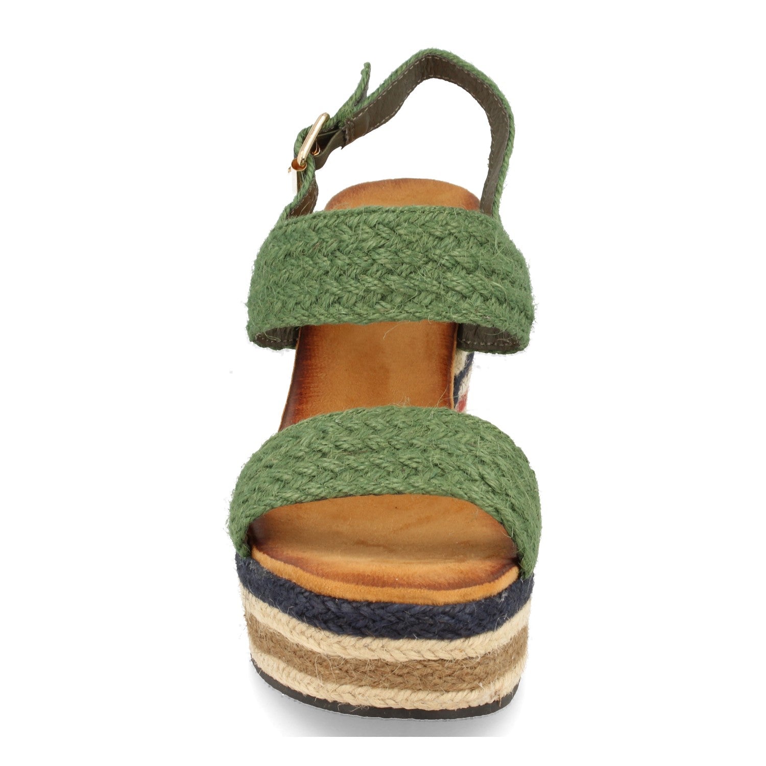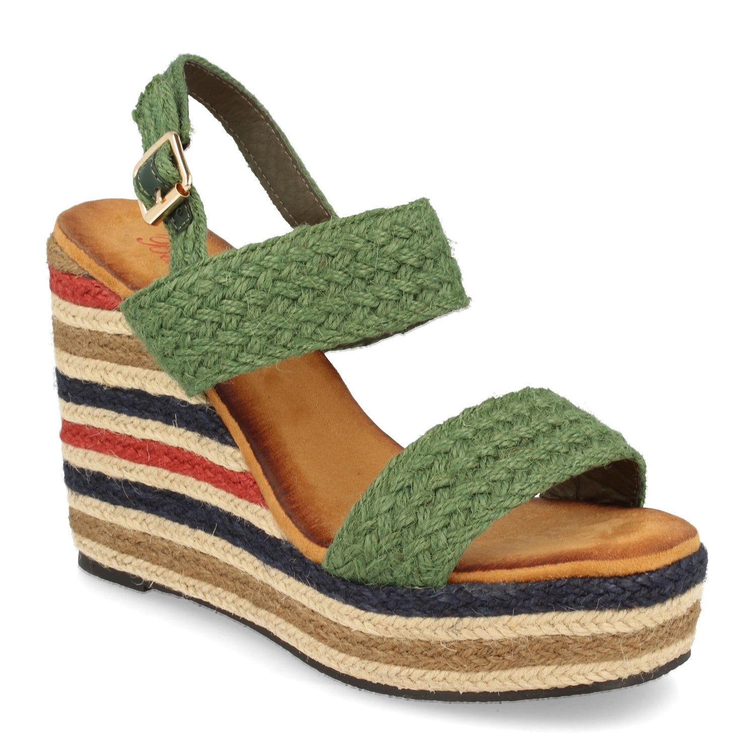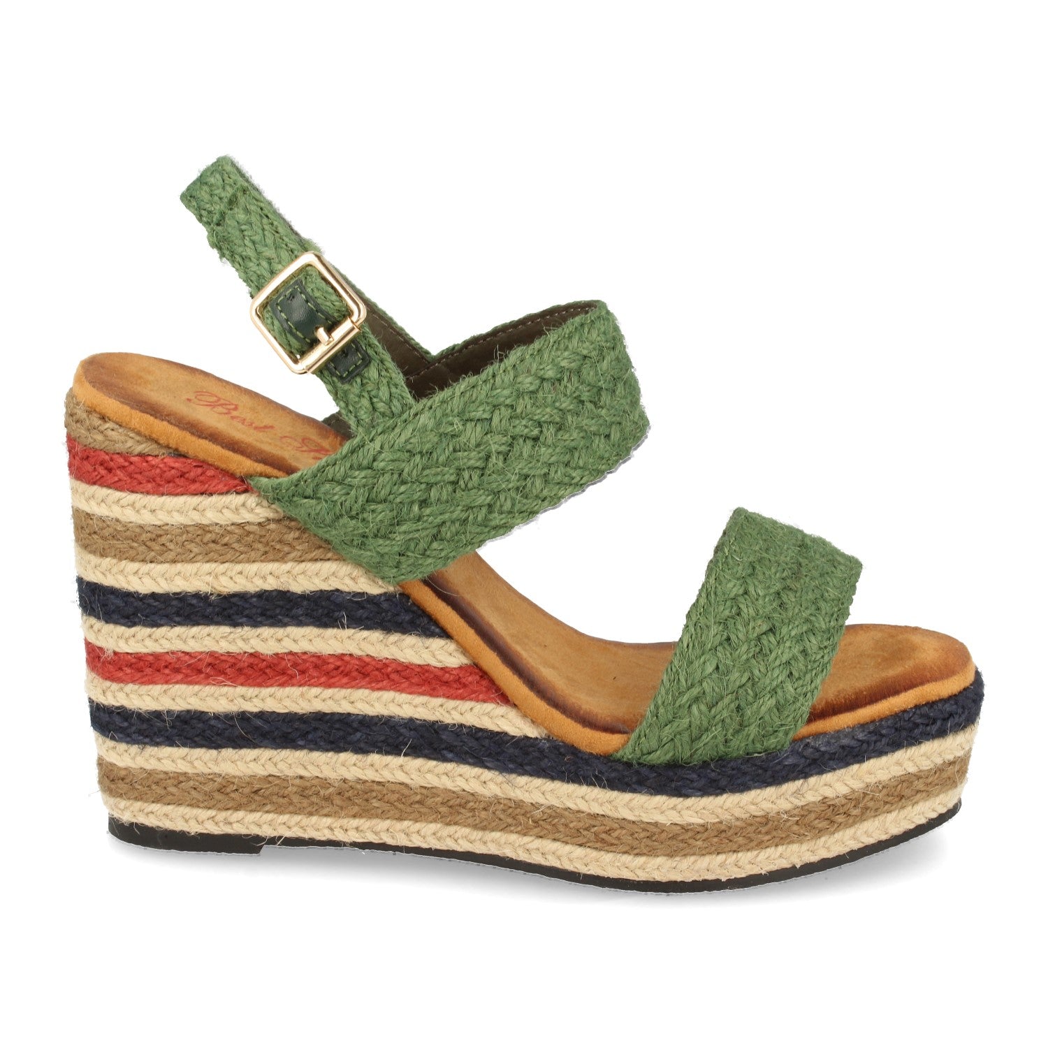 Sandalia de Cuña para Mujer con Yute MultiColor Pala y Cierre de Rafia con Hebilla Primavera Verano