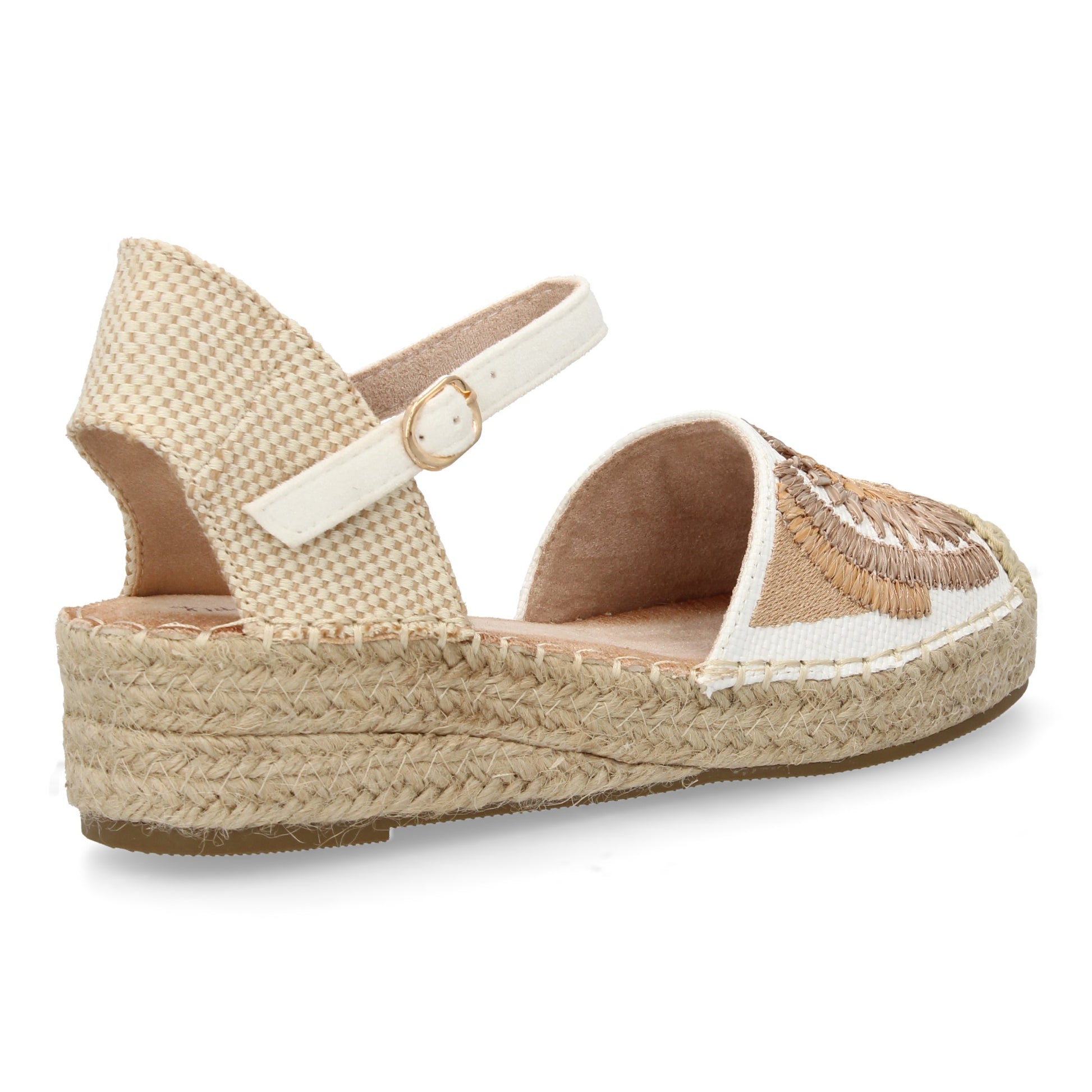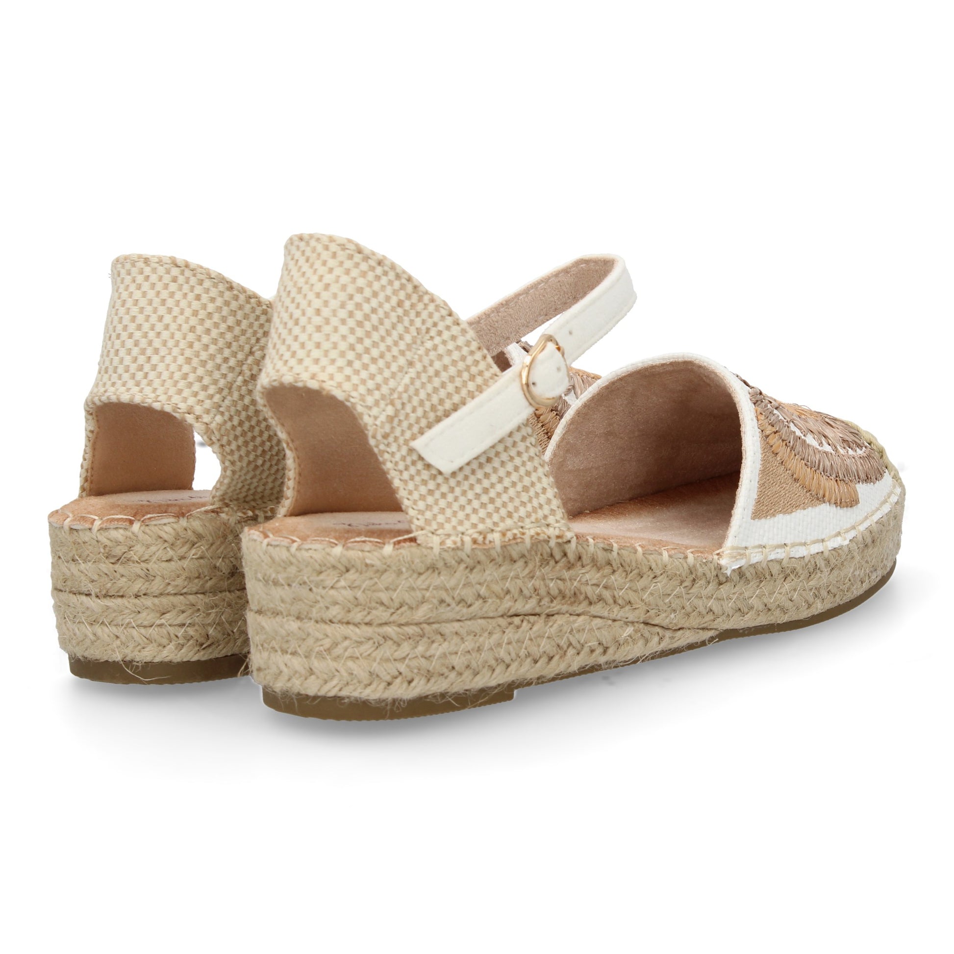 Sandalia de cuña de yute para mujer comodas y elegantes diseño de flores bordadas en la pala y cierre de hebilla ideales para primavera-verano.