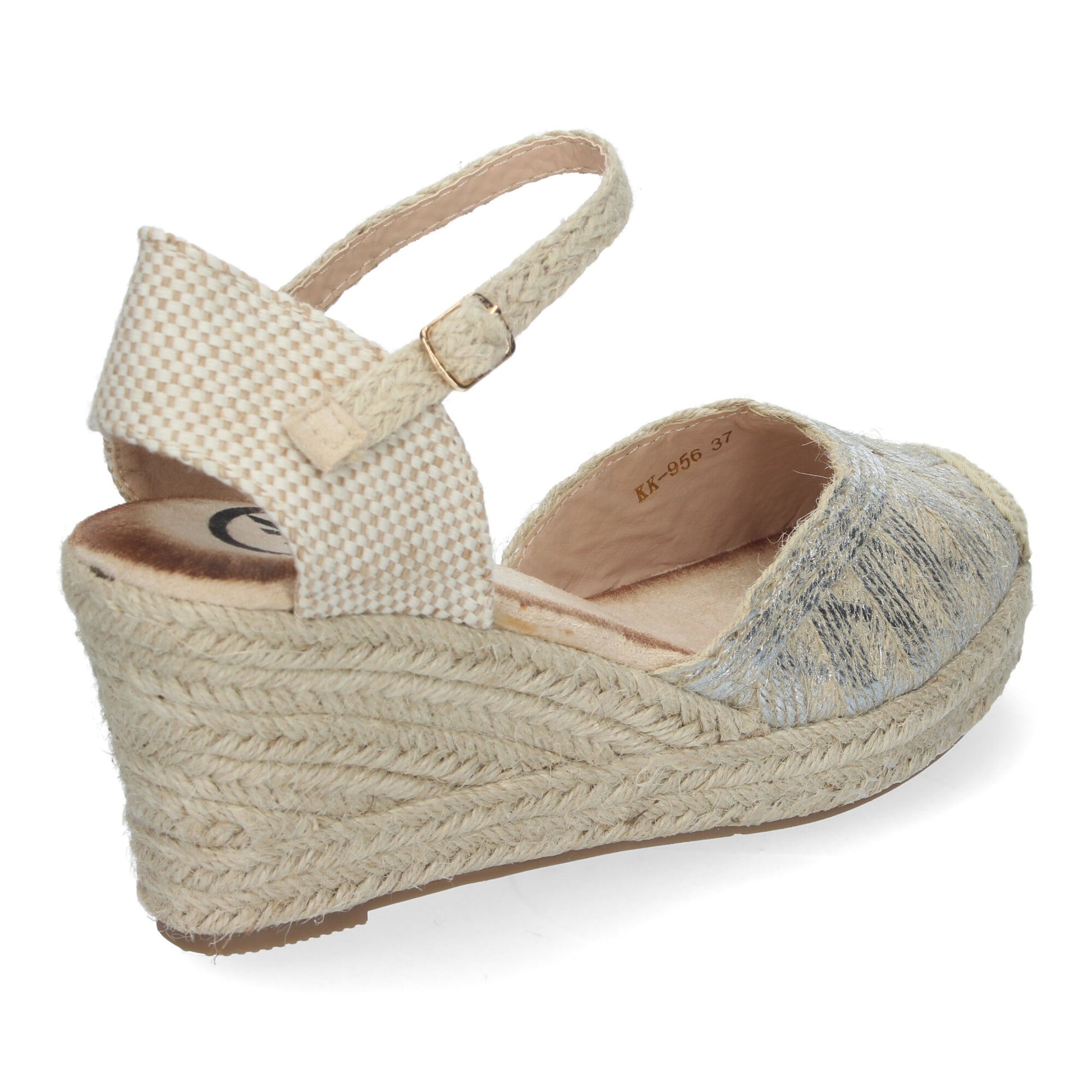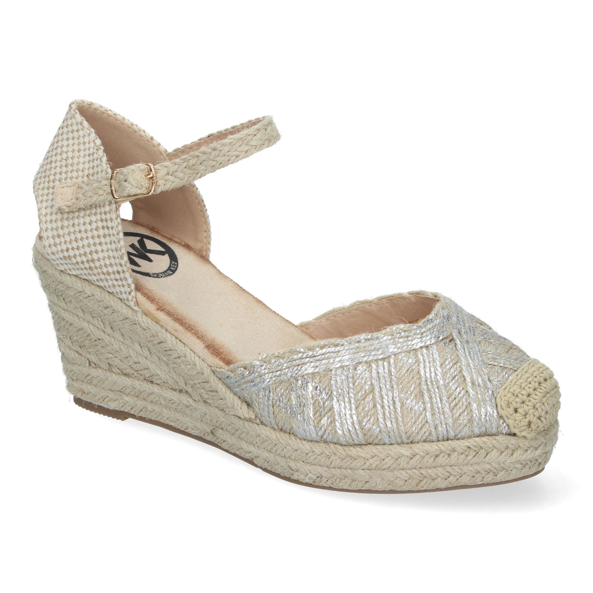 Sandalias de Cuña de Yute para Mujer Cómodas y Elegantes Punta Cerrada con Adornos Trenzados en la Pala y Cierre de Hebilla.