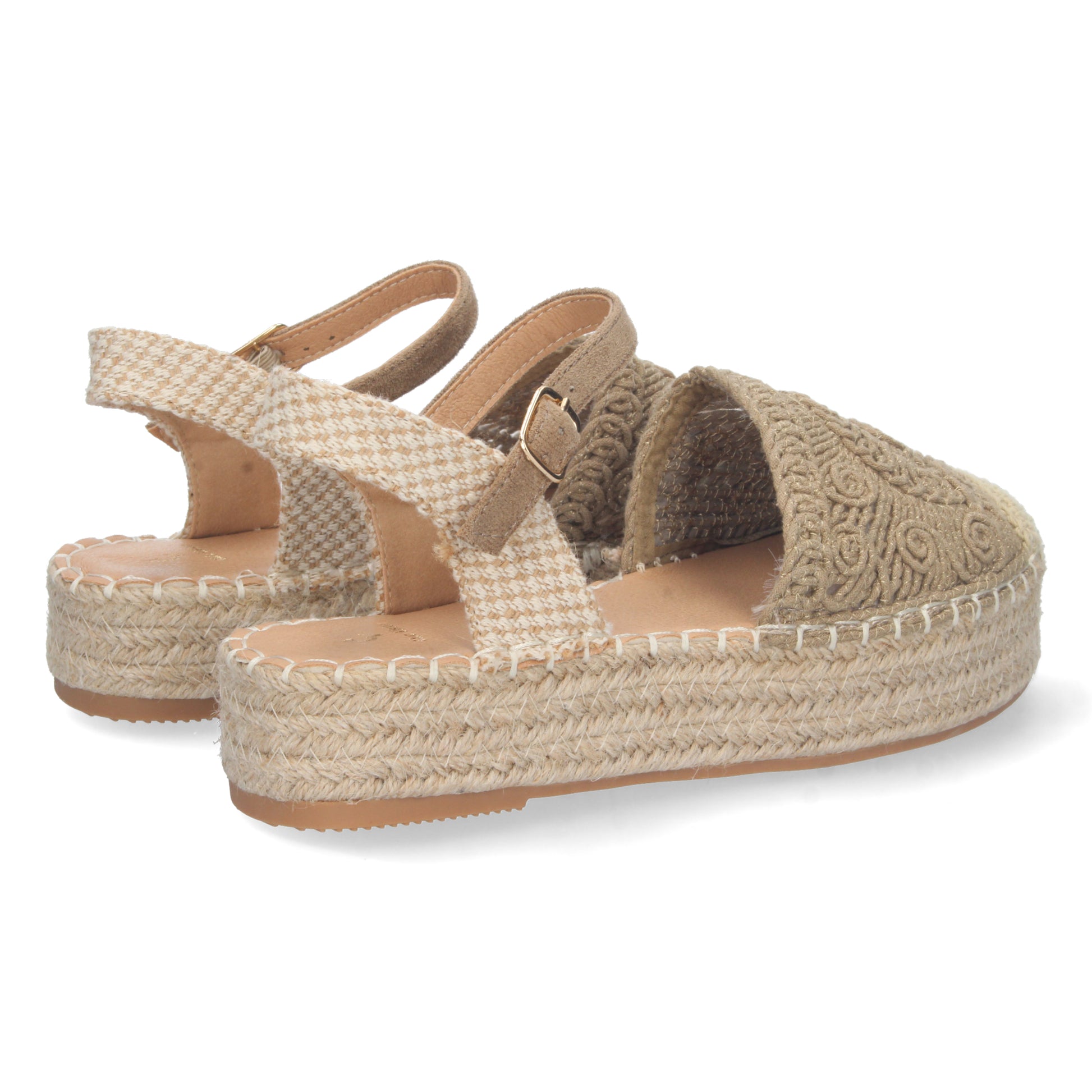 Sandalia de Plataforma para Mujer Comoda Forrada de Yute Pala Cerrada y Entrelazada Talón Abierto y Cierre de Hebilla