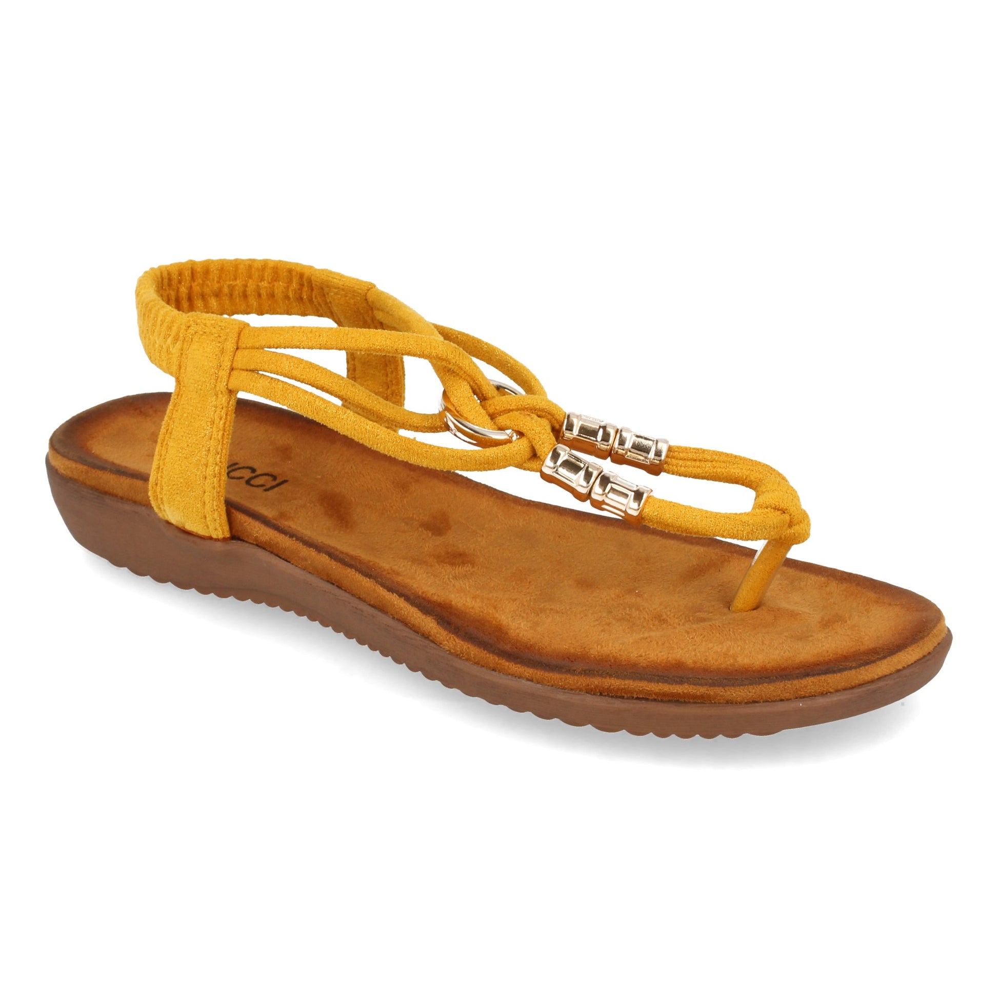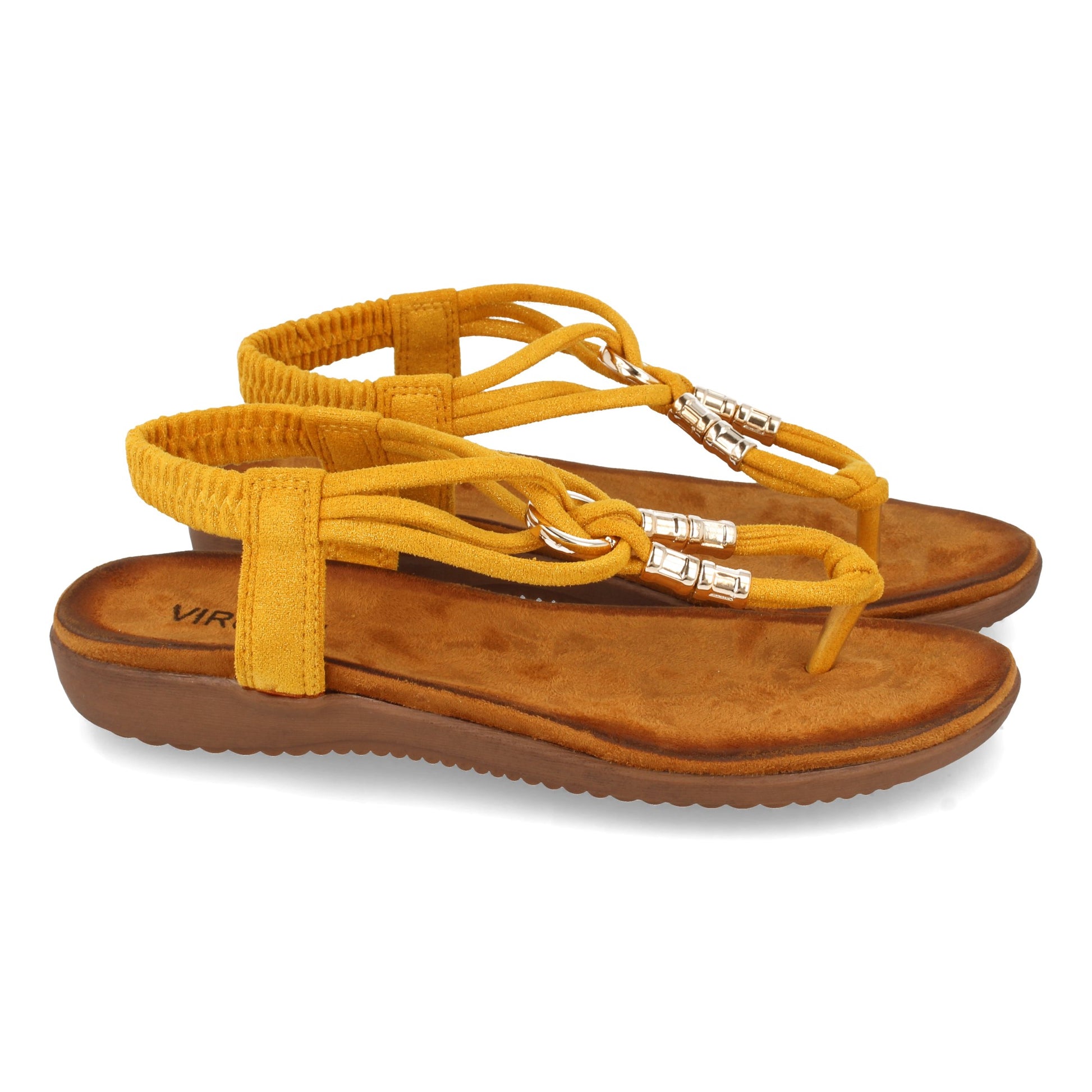 Sandalia Plana de Mujer Comodas de Estilo Esclava con Detalle Metalico en el Empeine y Cierre Elástico en el Talón Primavera Verano
