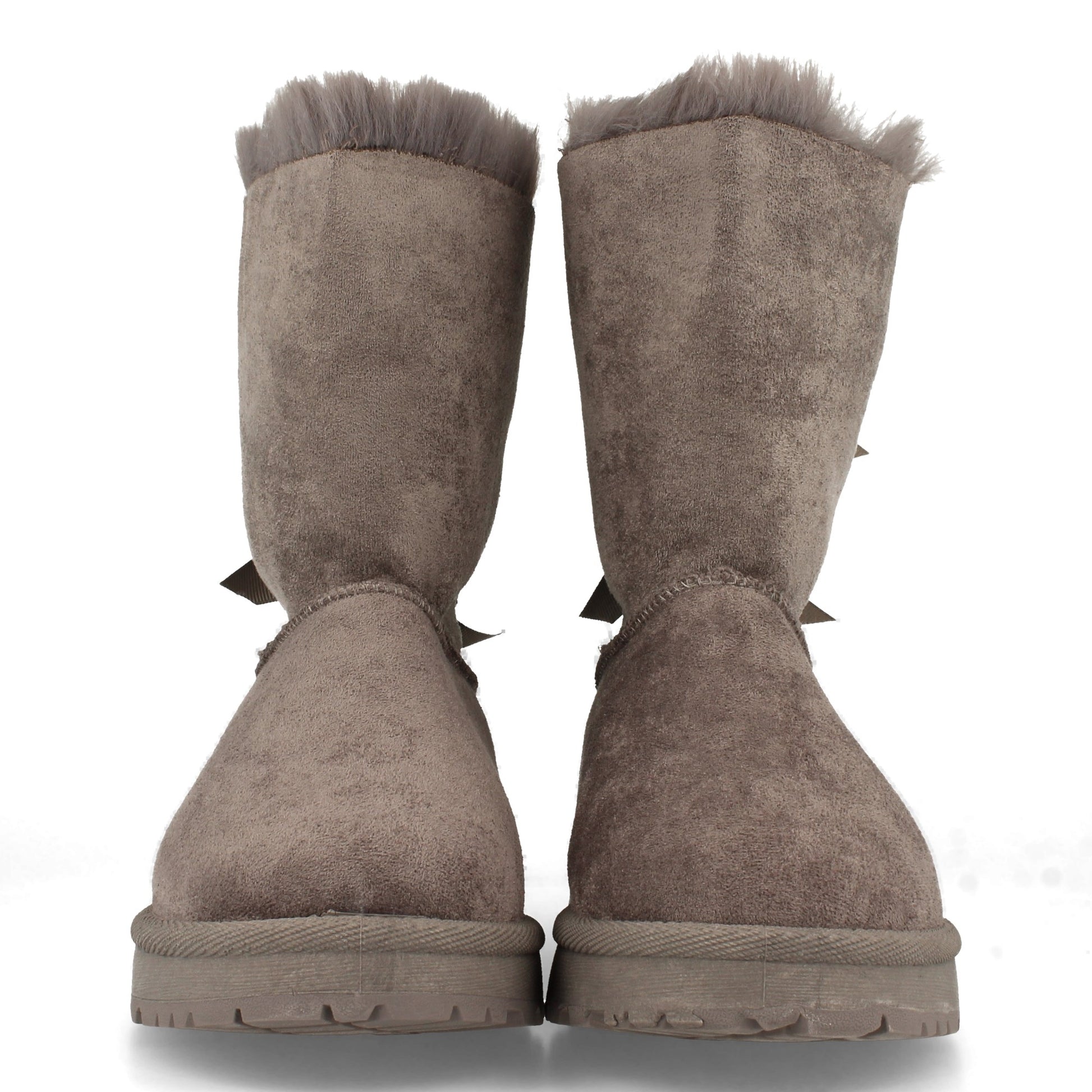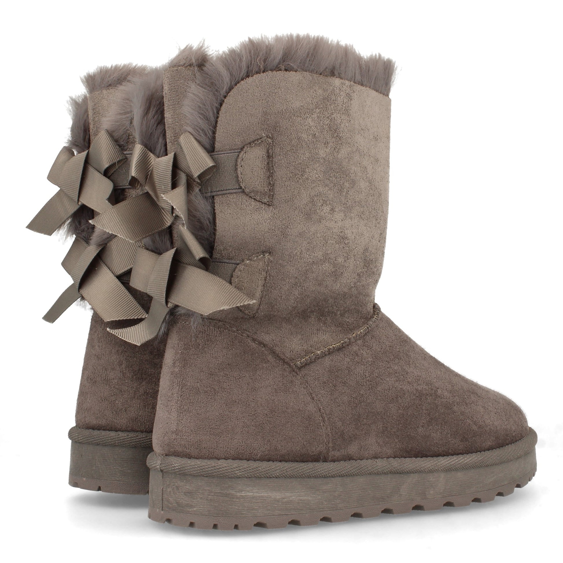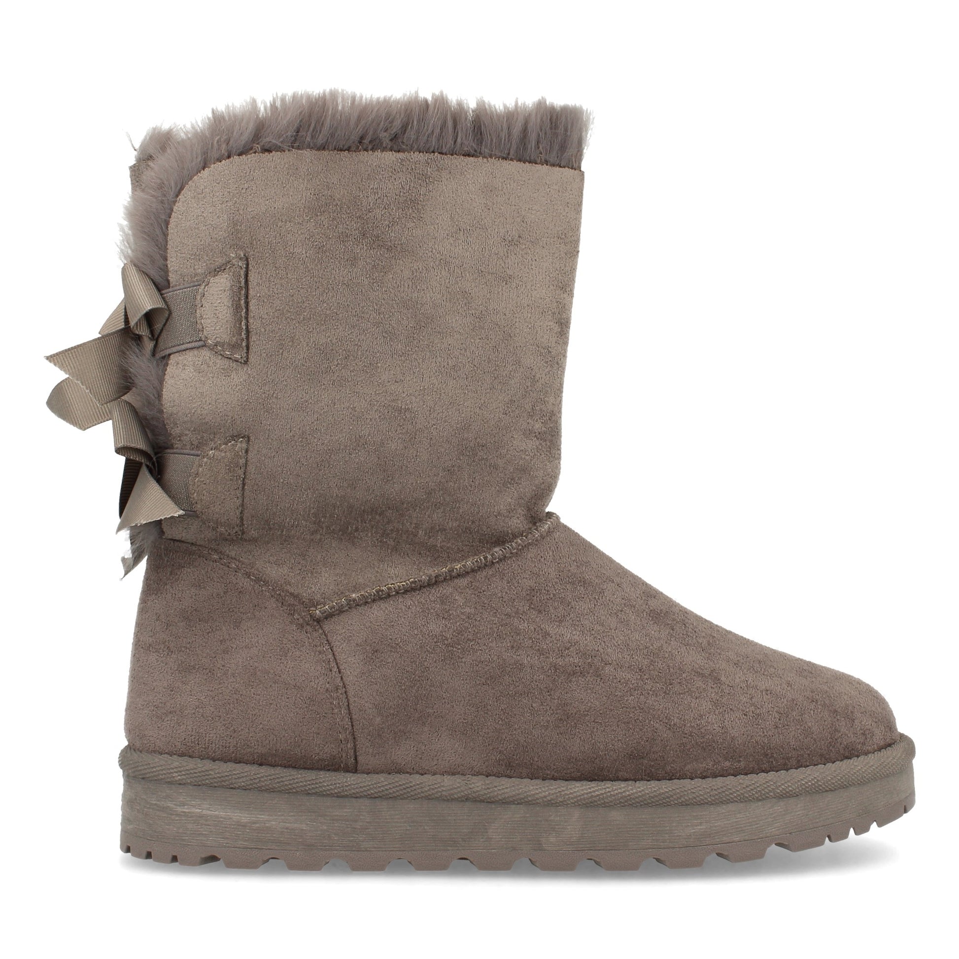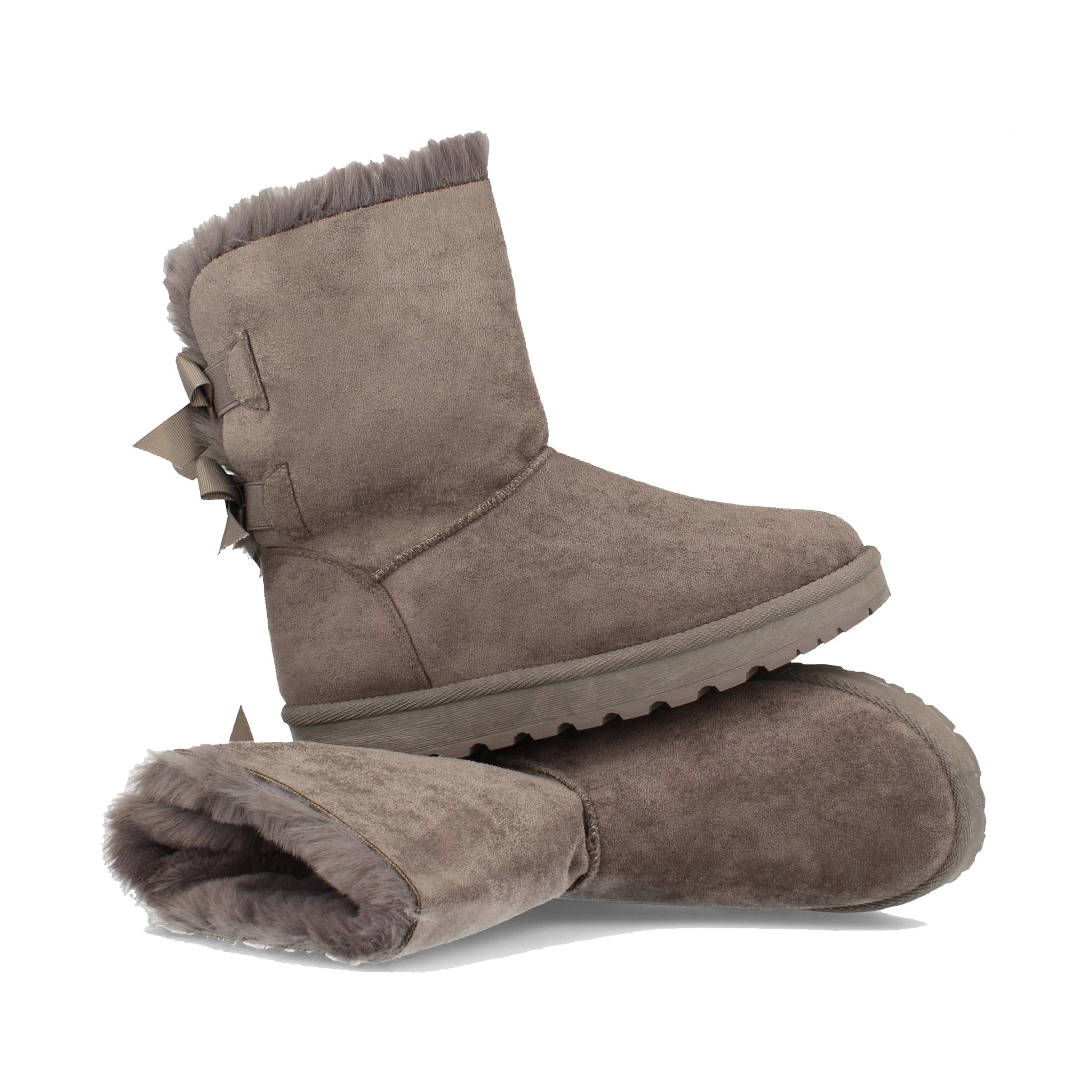 Botín Plano para Mujer Estilo Australiano Forrado de Pelo de Punta Redonda y con Lazos en el Contrafuerte como Detalle Otoño Invierno