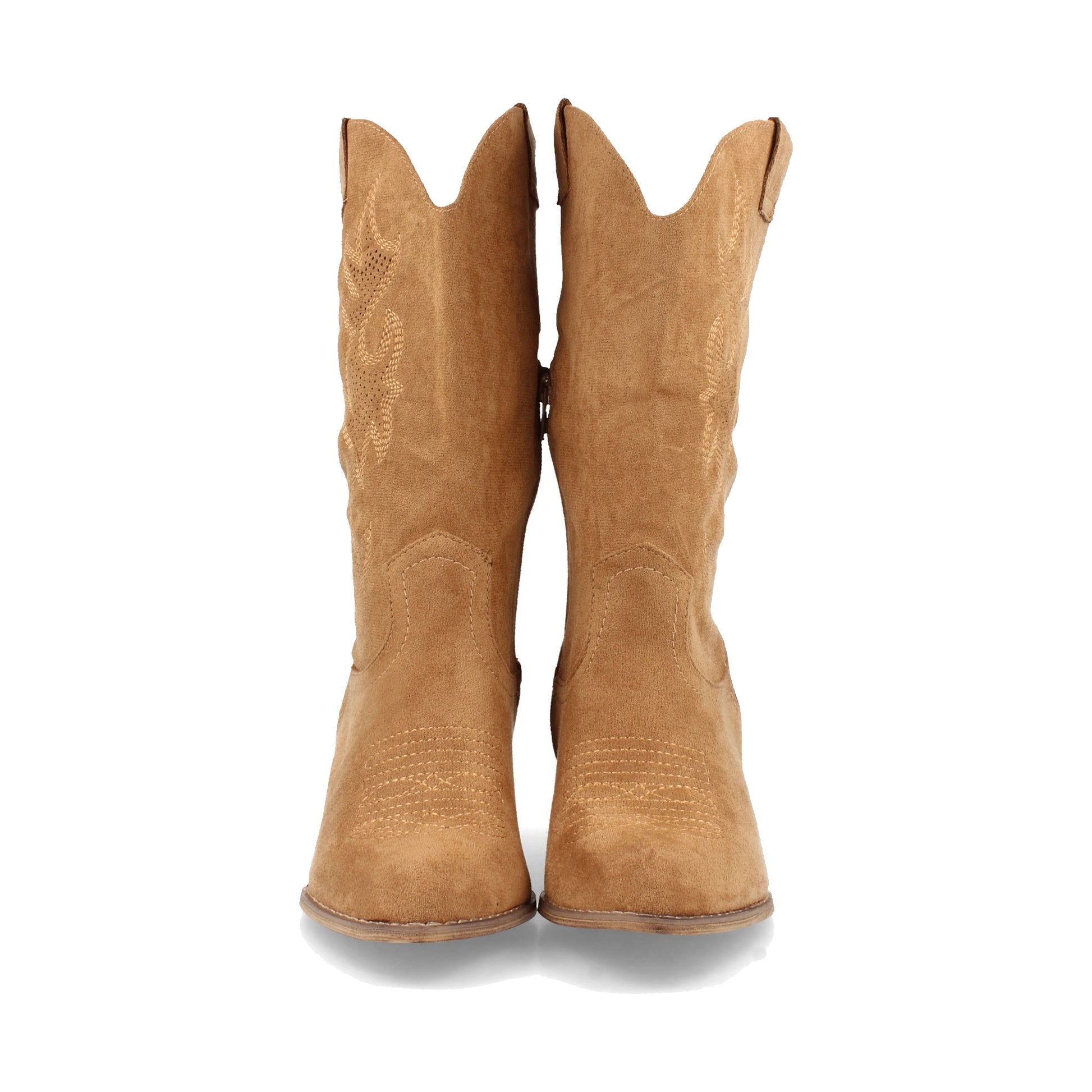 Botín Campero con Tacón Cómodo con Bordado en Caña y Empeine y Cierre de Cremallera.