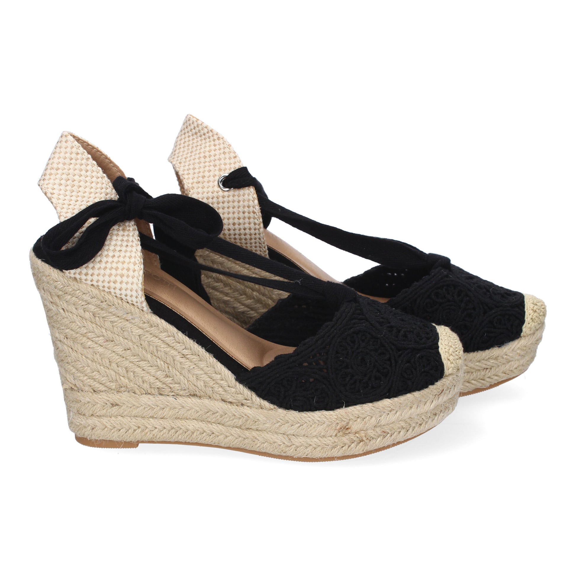 Sandalia de Cuña de Yute para Mujer Diseño Comodo y Moderno Elegante con Cintas Atadas al Tobillo y Pala Bordada Ideales para Primavera-Verano.