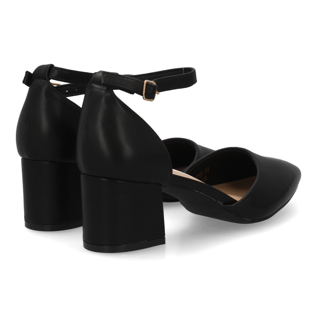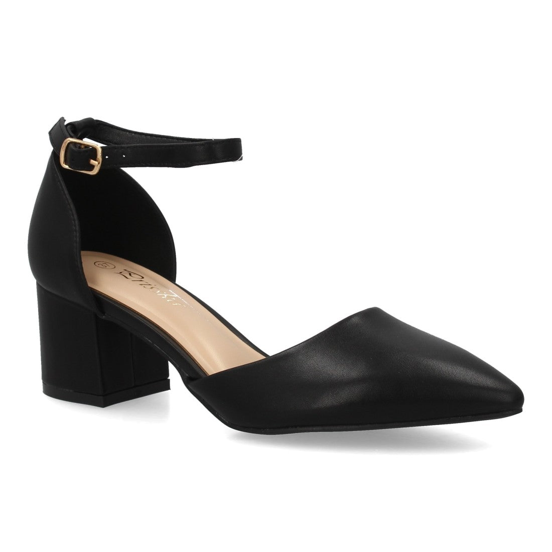 Zapato de tacón medio para mujer con diseño elegante y punta fina cierre de hebilla. Tacon ancho y cómodo ideal diario u ocasiones especiales. Talon cerrado.