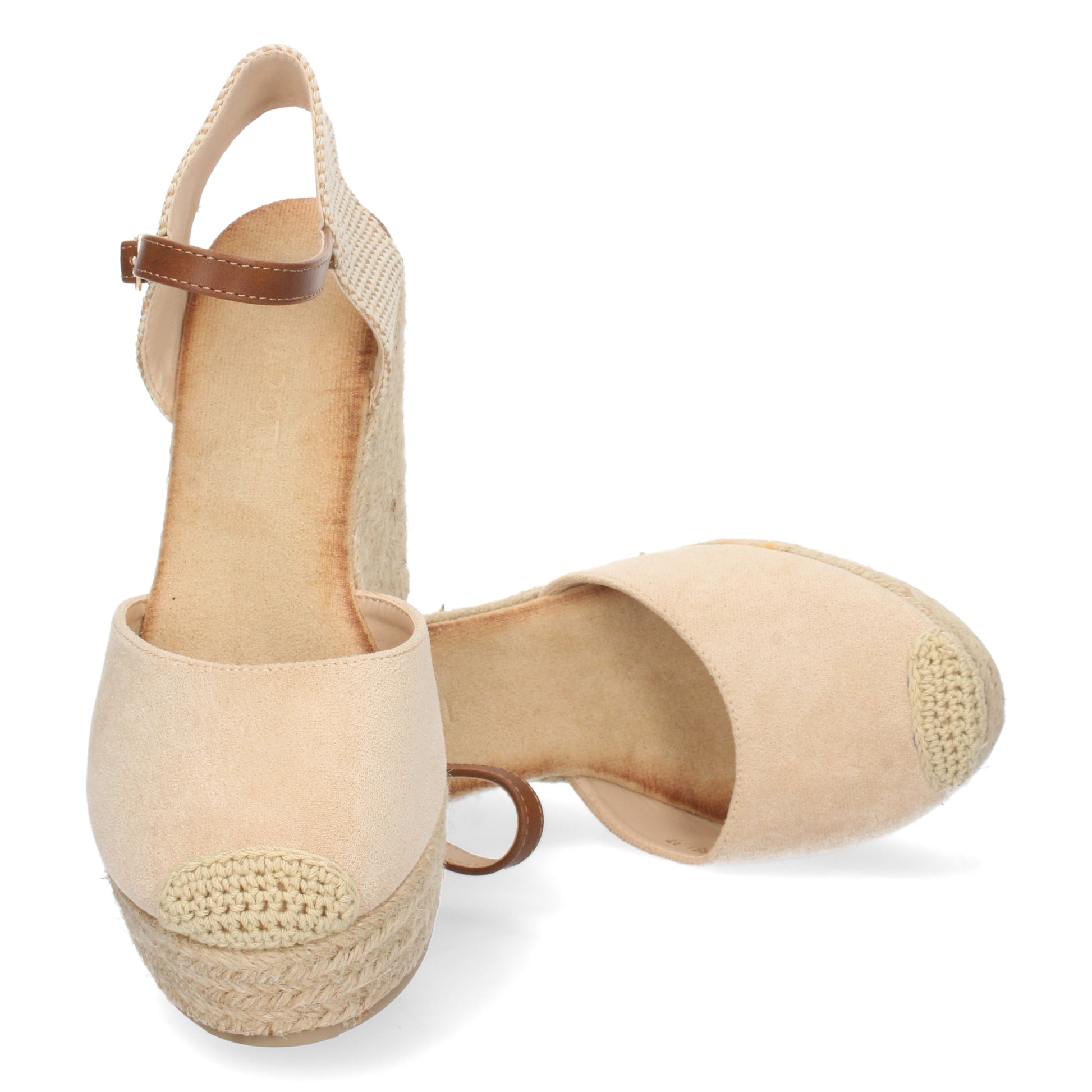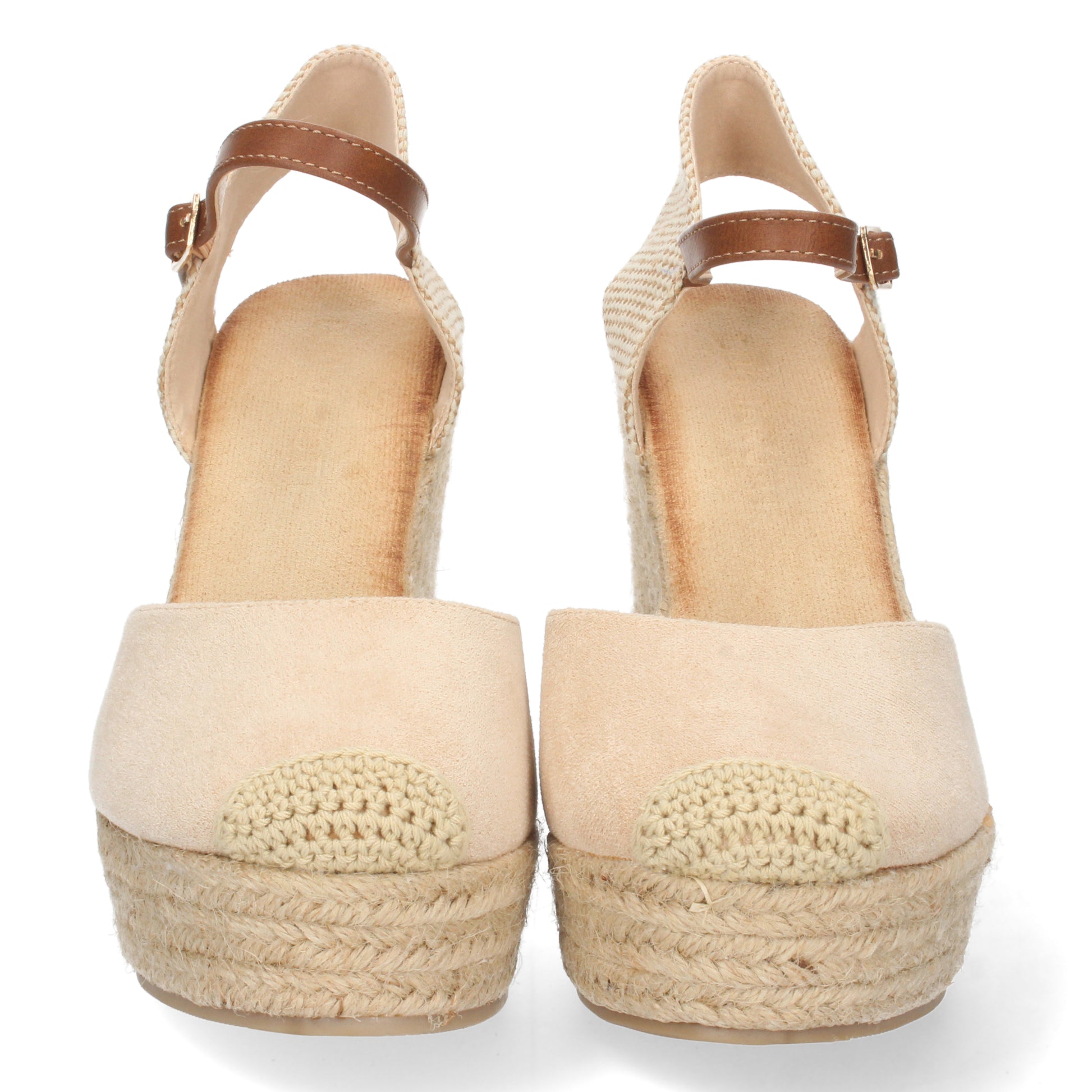 Sandalia de Cuña para Mujer Forrada de Yute con Pala Cerrada y Cierre de Hebilla Primavera Verano