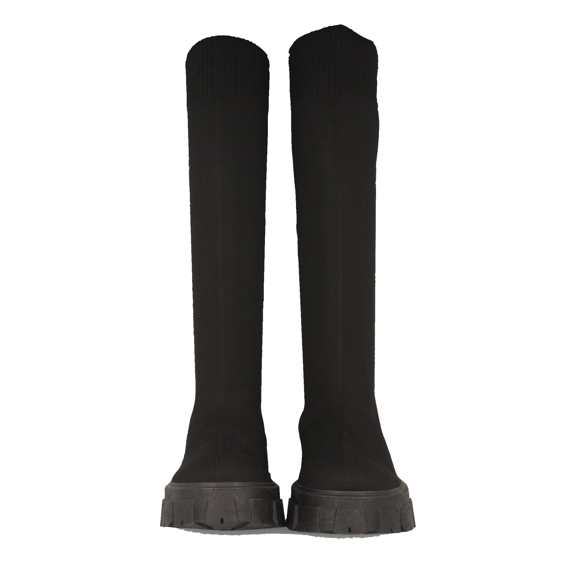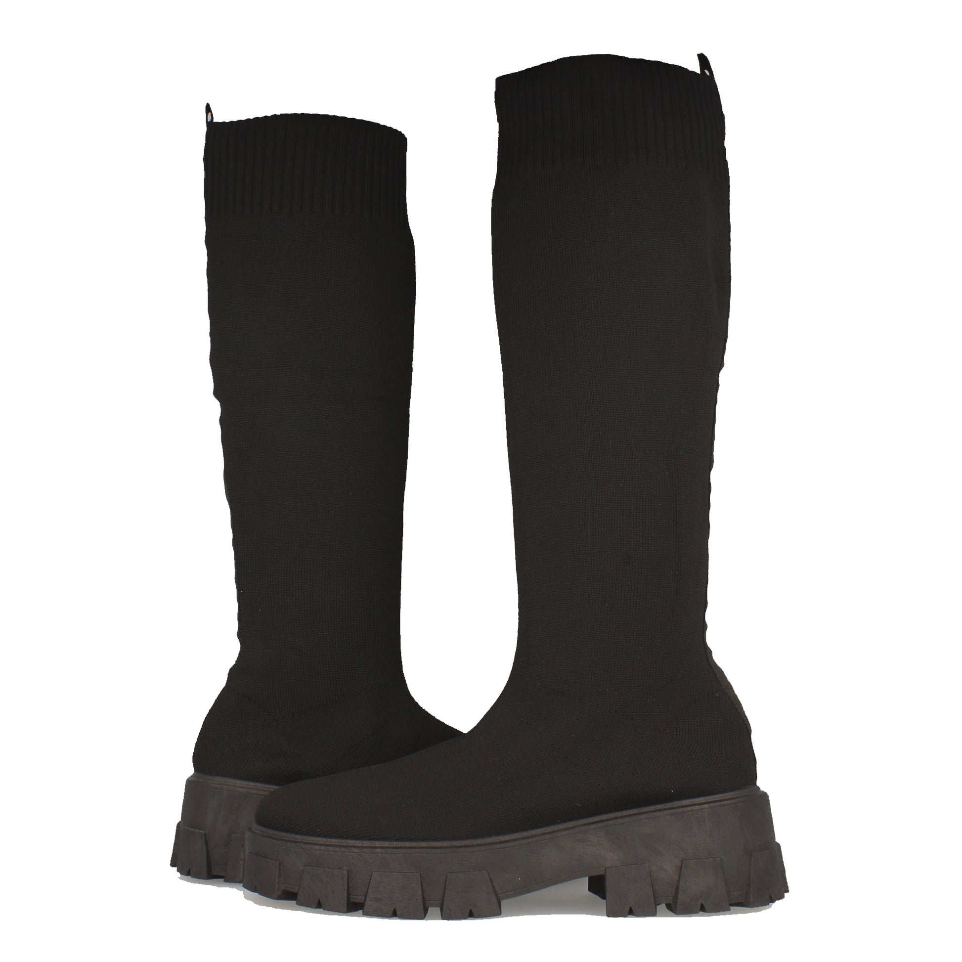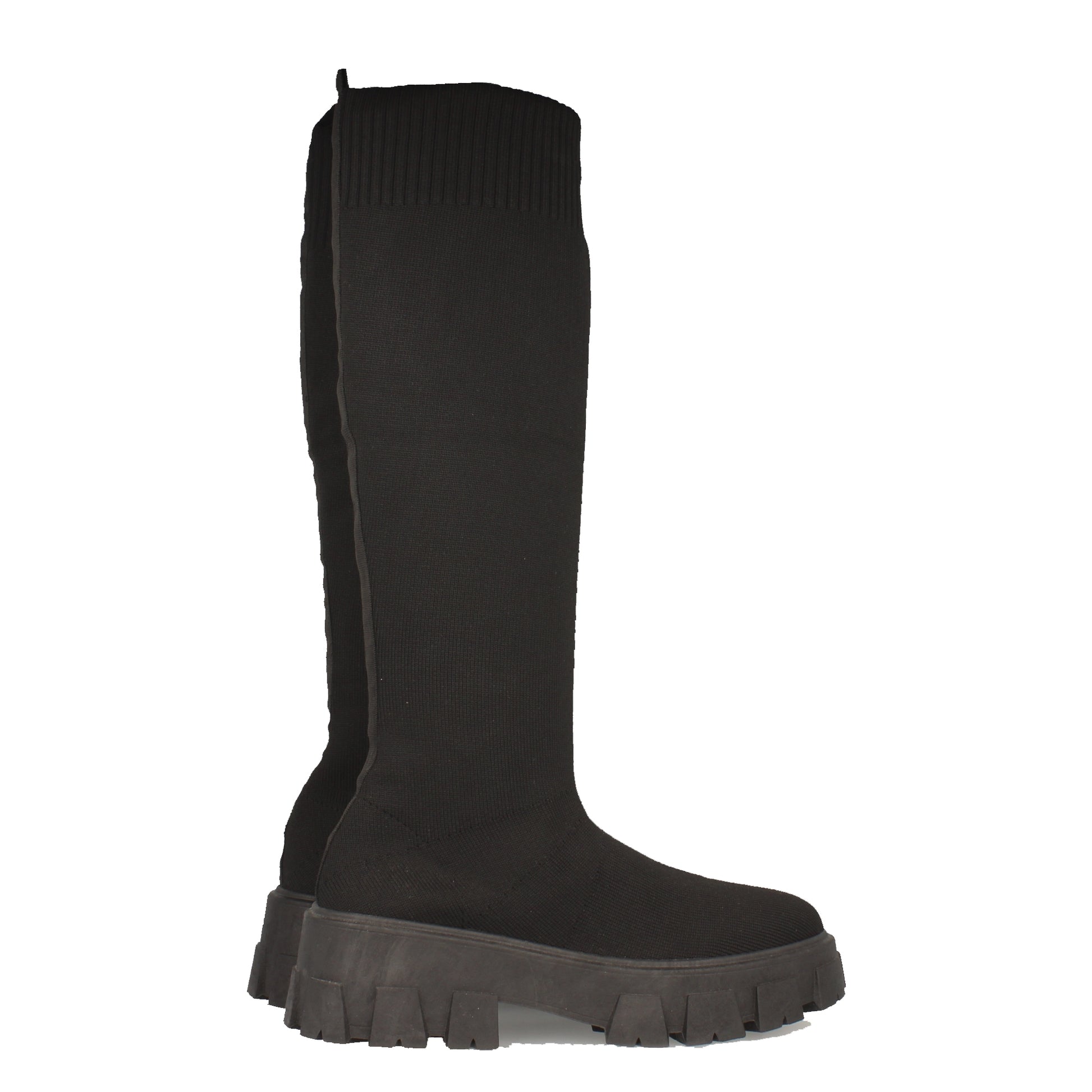 Bota de Mujer con Plataforma Suela Dentada Material Elástico y Cierre de Ajuste Otoño Invierno