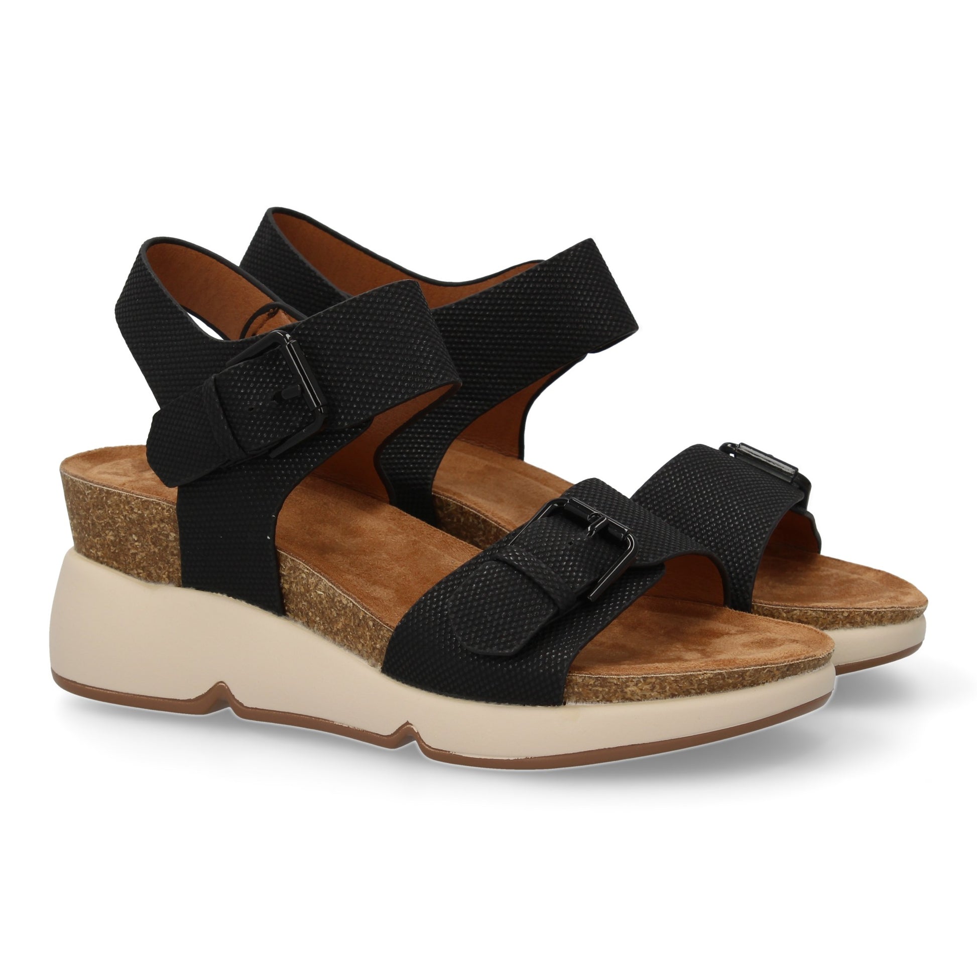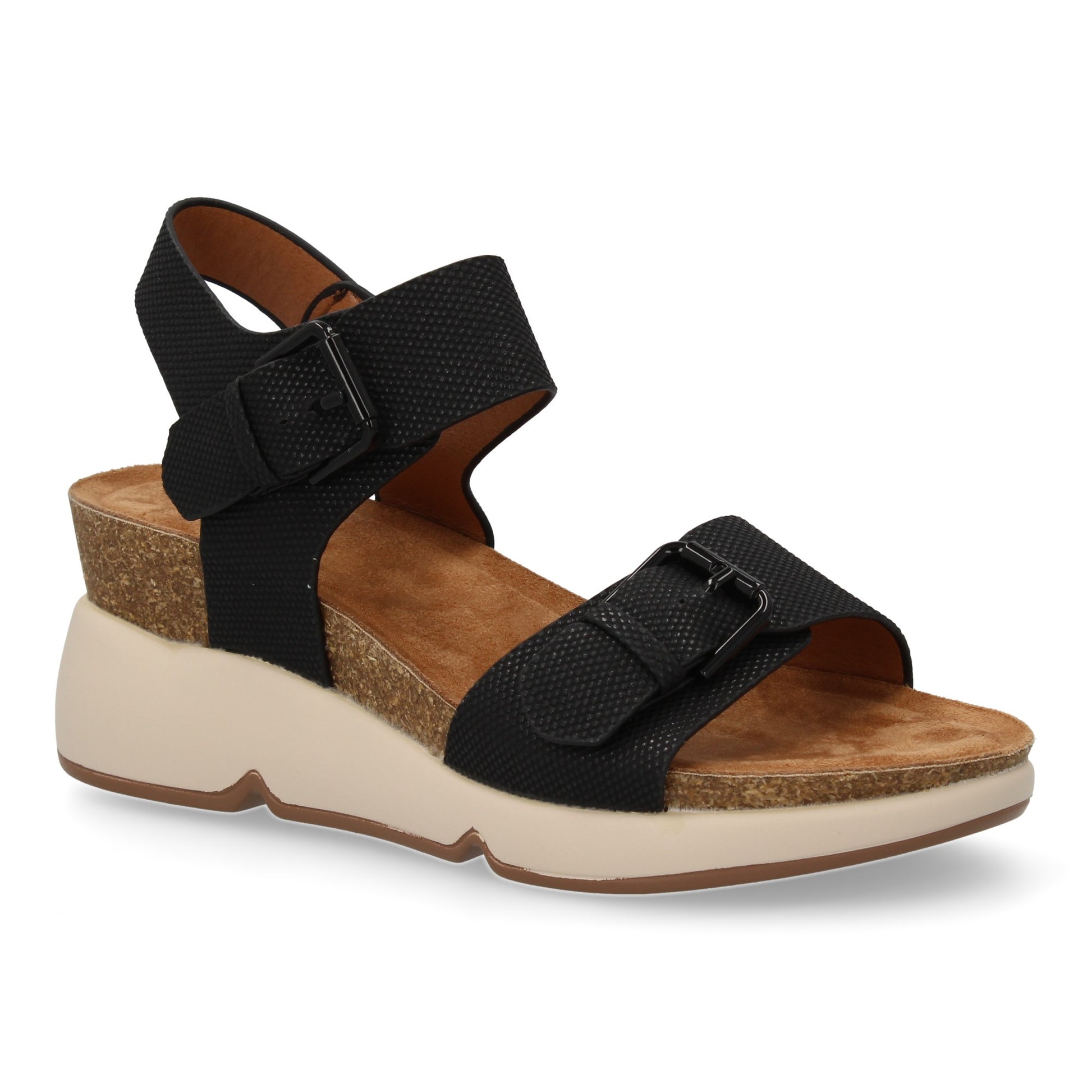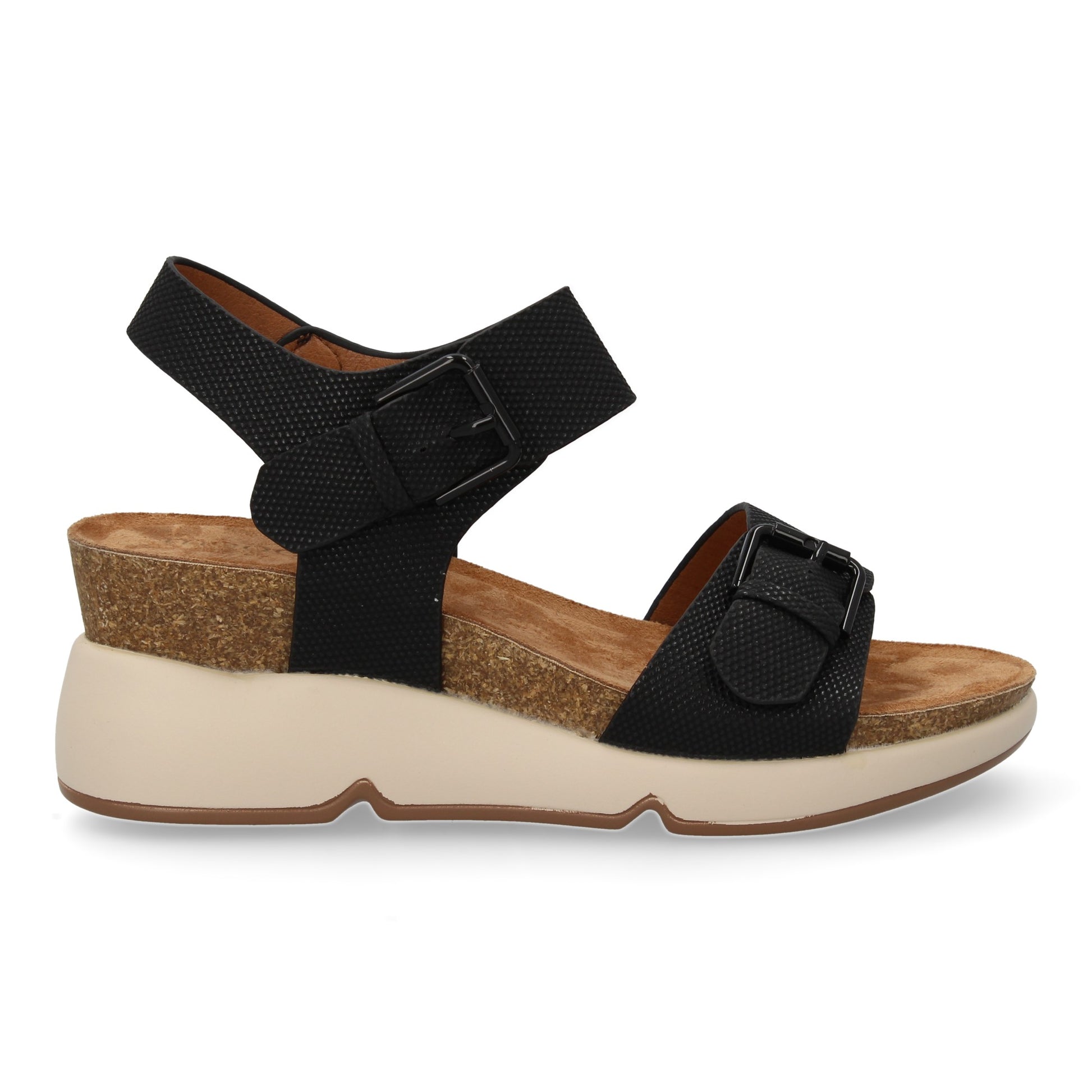 Sandalia de cuña para mujer con planta bio diseño moderno con doble cierre de hebilla comodas y elegantes ideales para primavera-verano.