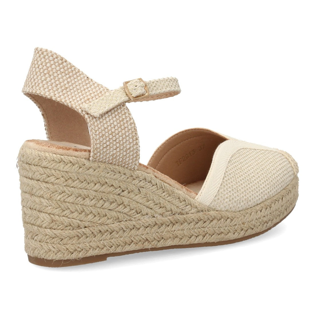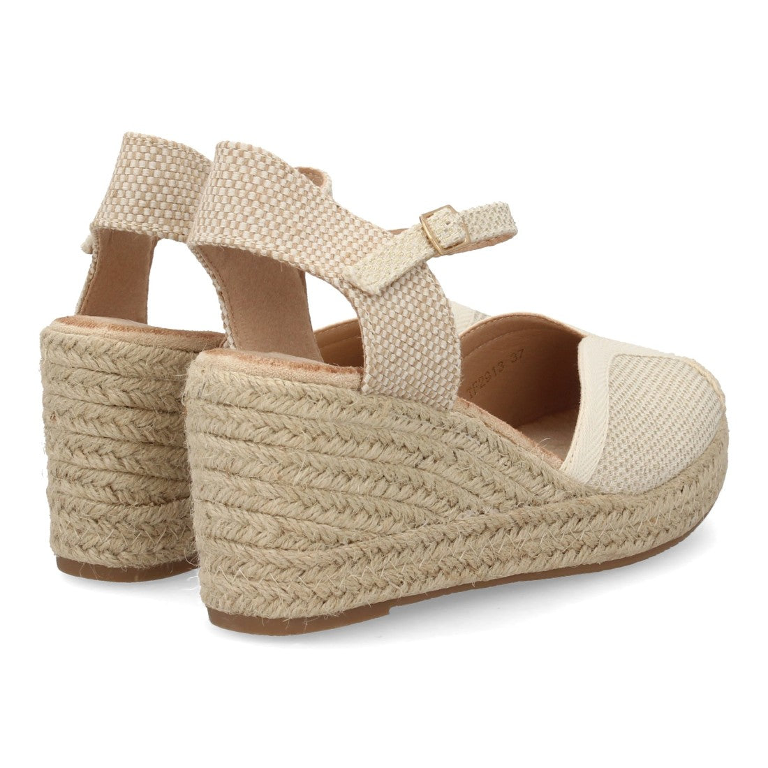Alpargata de cuña para mujer diseño artesanal punta cerrada cuerre de hebilla y talón abierto altura de 5 cuerdas. Suela acolchada y cuña cómoda ideal primavera verano.