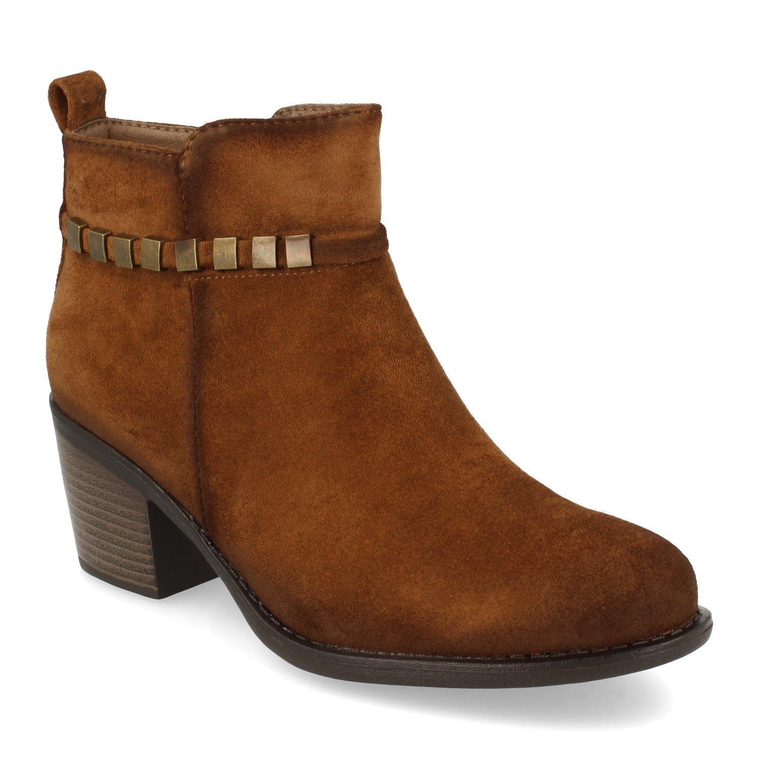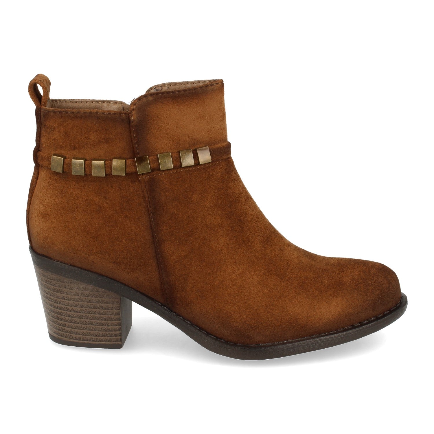 Botín de Tacón para Mujer con Estampado Liso Detalle de Correa con Tachuelas Cierre de Cremallera Otoño Invierno