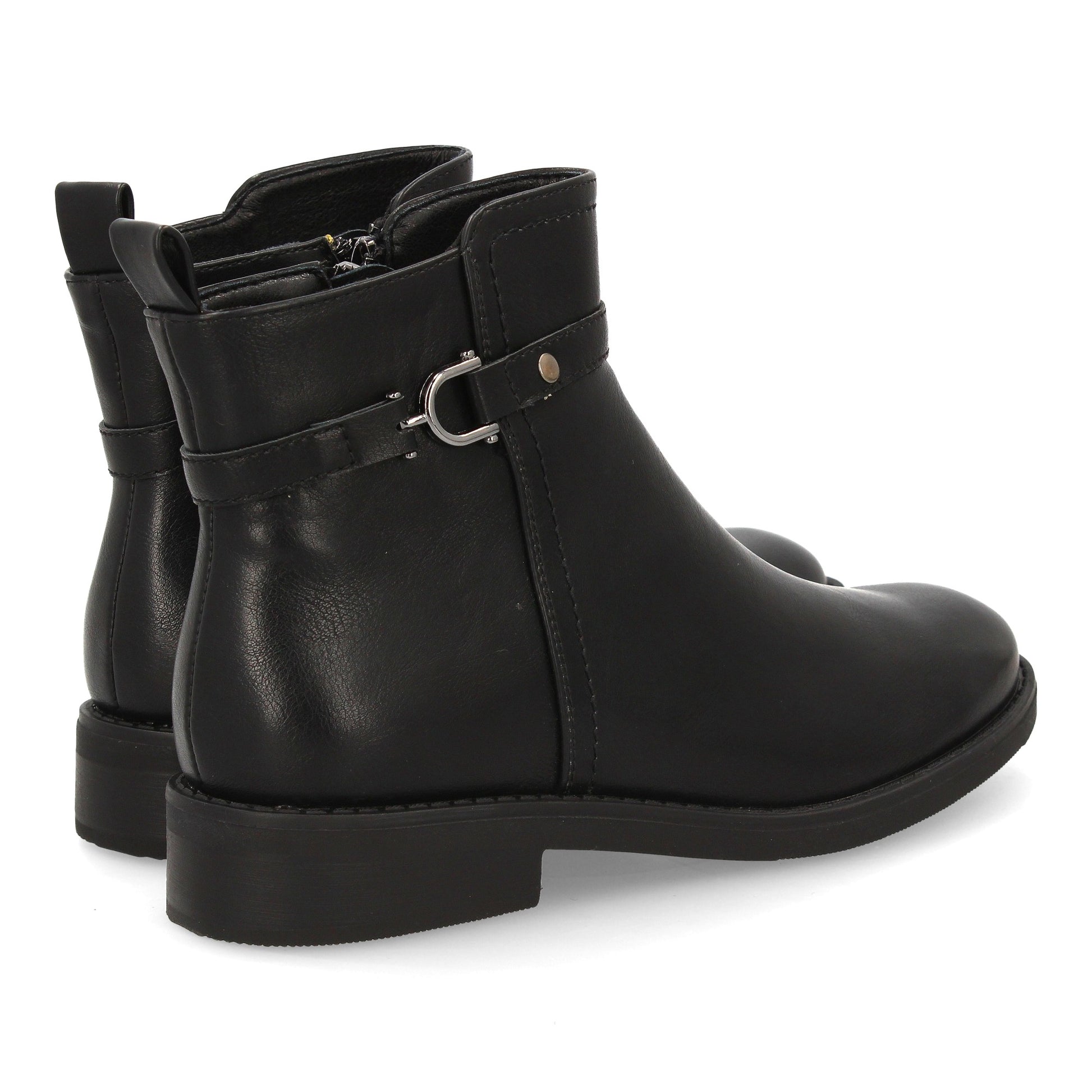 Botín plano para mujer ideal para la temporada Otoño Invierno diseño cómodo y funcional para el día a día. Diseño con tira decorativa con hebilla metálica. Cremallera lateral y suela cómoda y flexible.