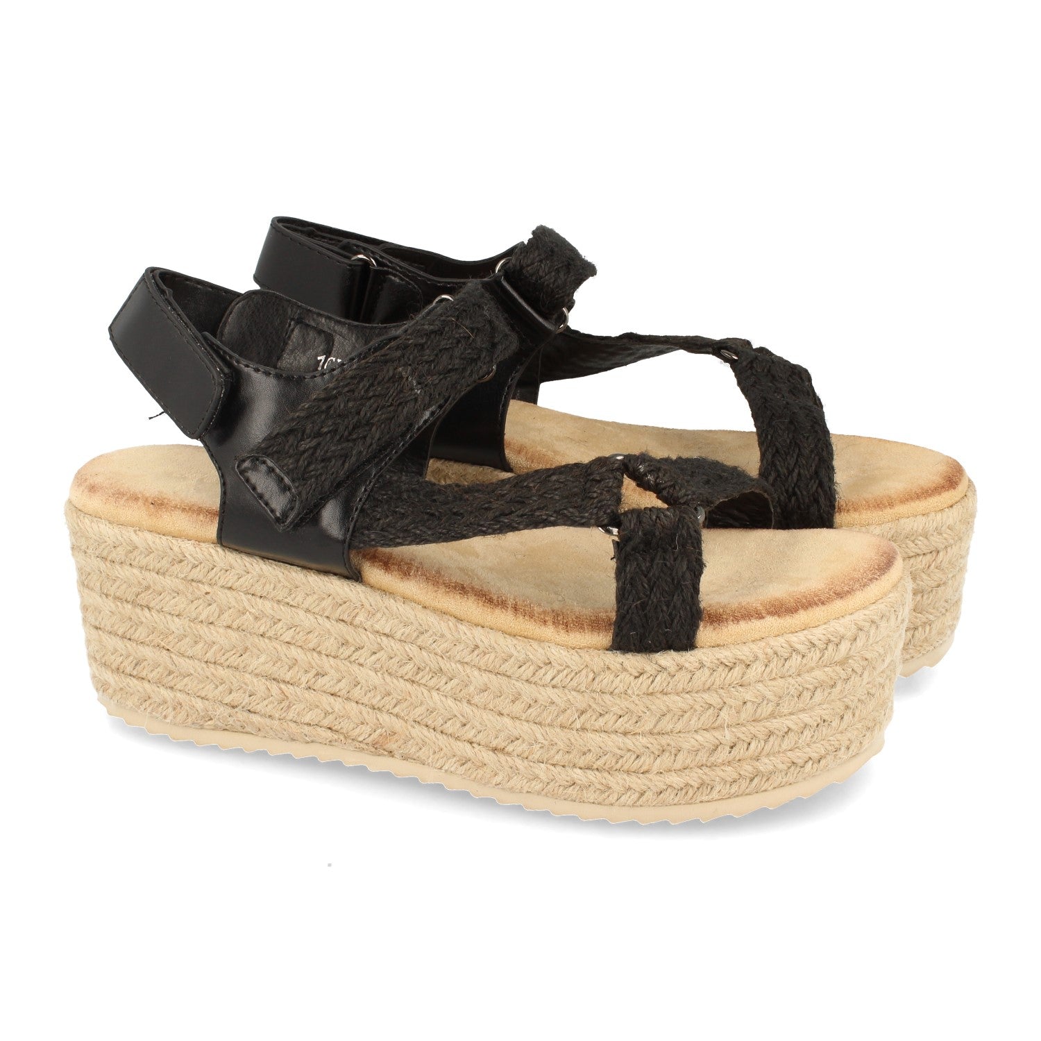Sandalia de Mujer con Plataforma Pala de Rafia y Cierre de Velcro Primavera Verano