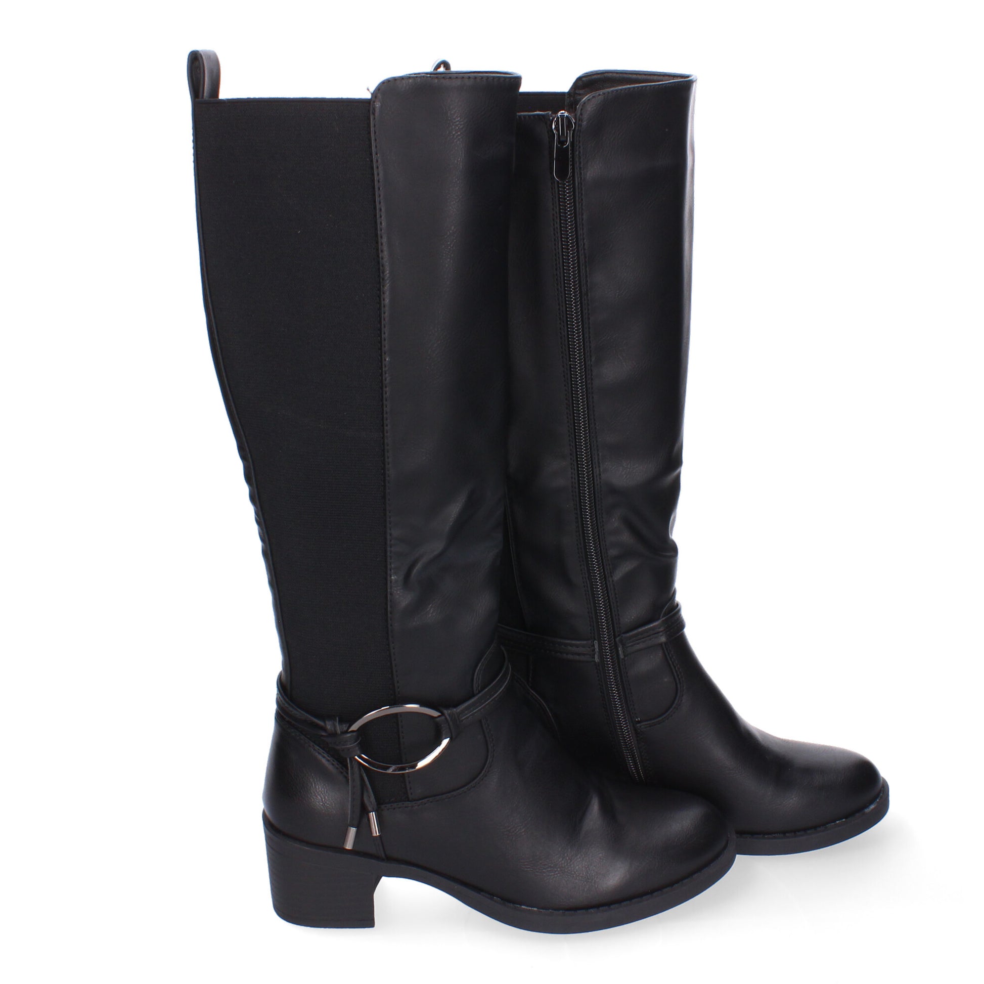 Botas de Tacón para Mujer Comodas y Elegantes Detalle de Hebilla Puntera Redonda y Cierre de Cremallera Lateral.