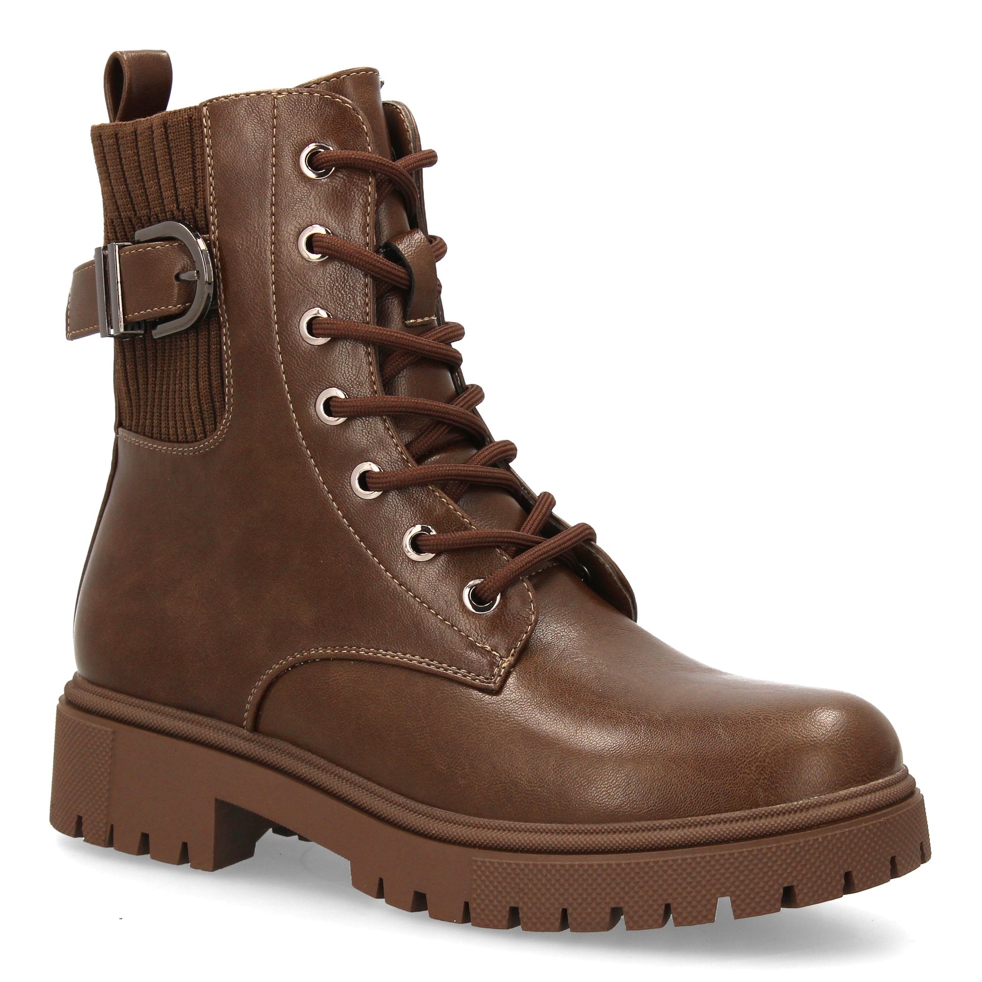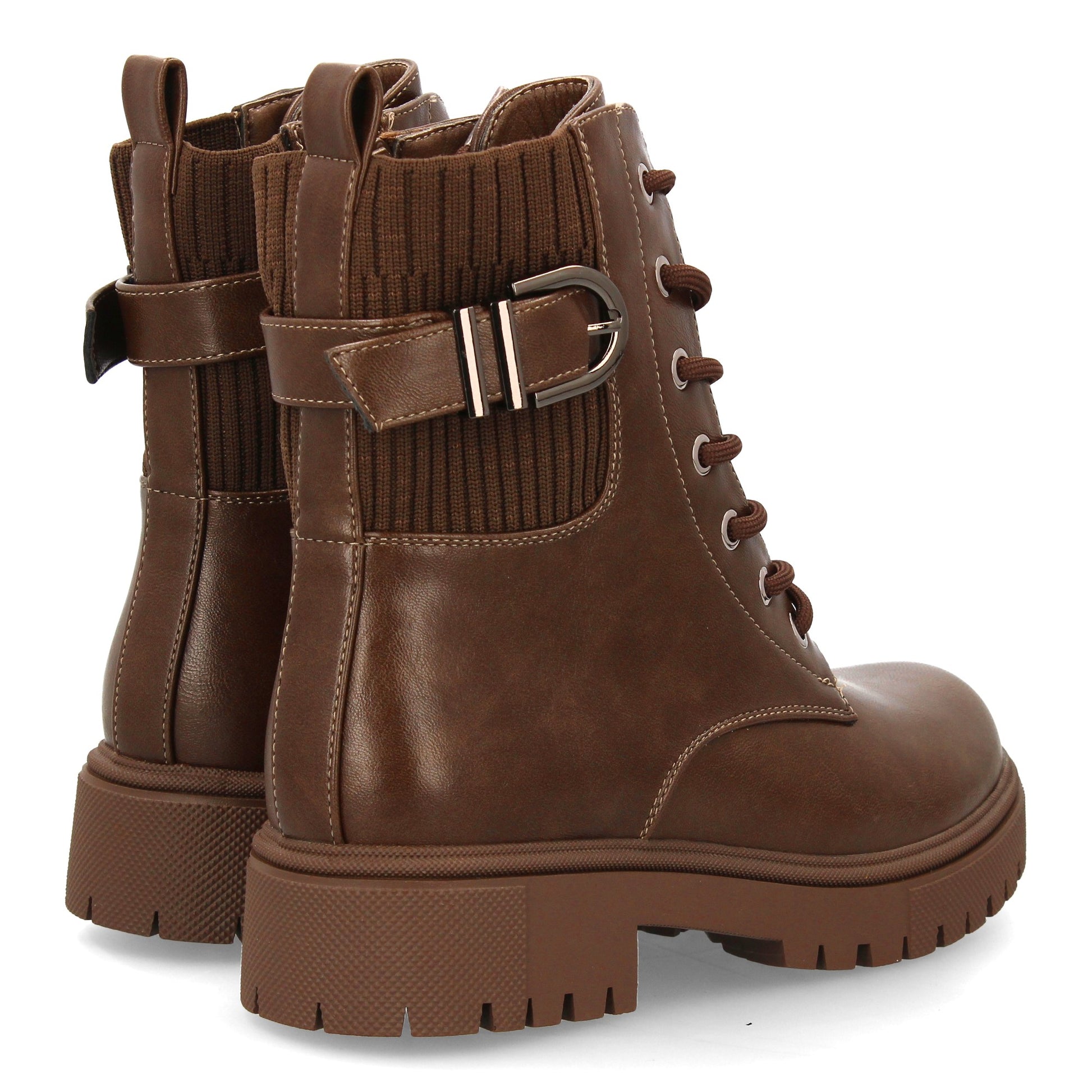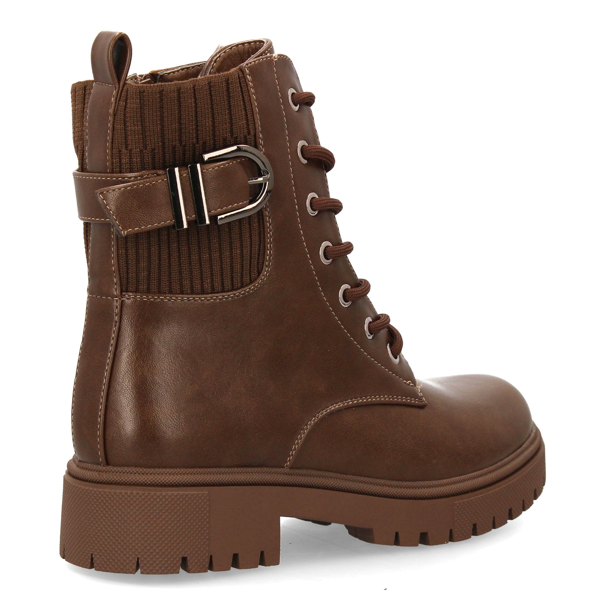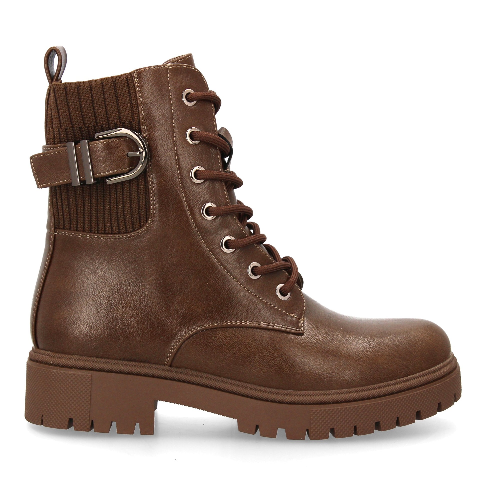 Botines de Tacón para Mujer Comodos y Elegantes Detalle de Hebilla con Suela Dentada Punta Redonda Cierre de Cordones y Cremallera Lateral Ideales para Otoño-Invierno.