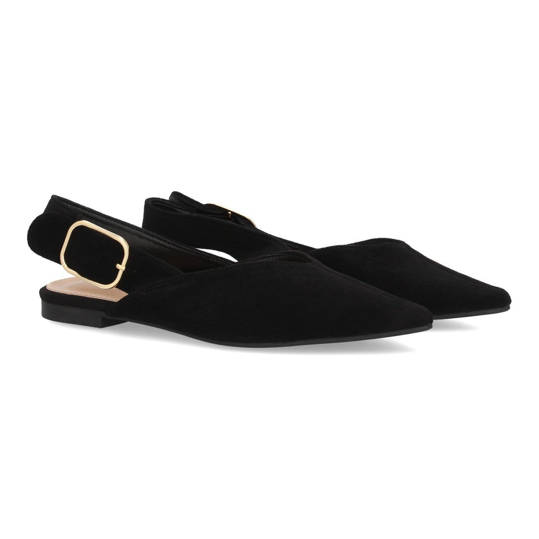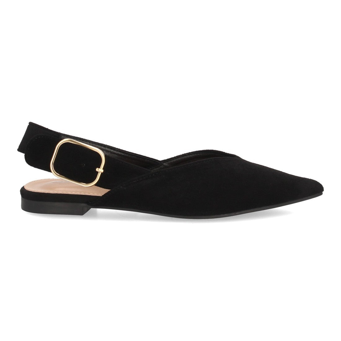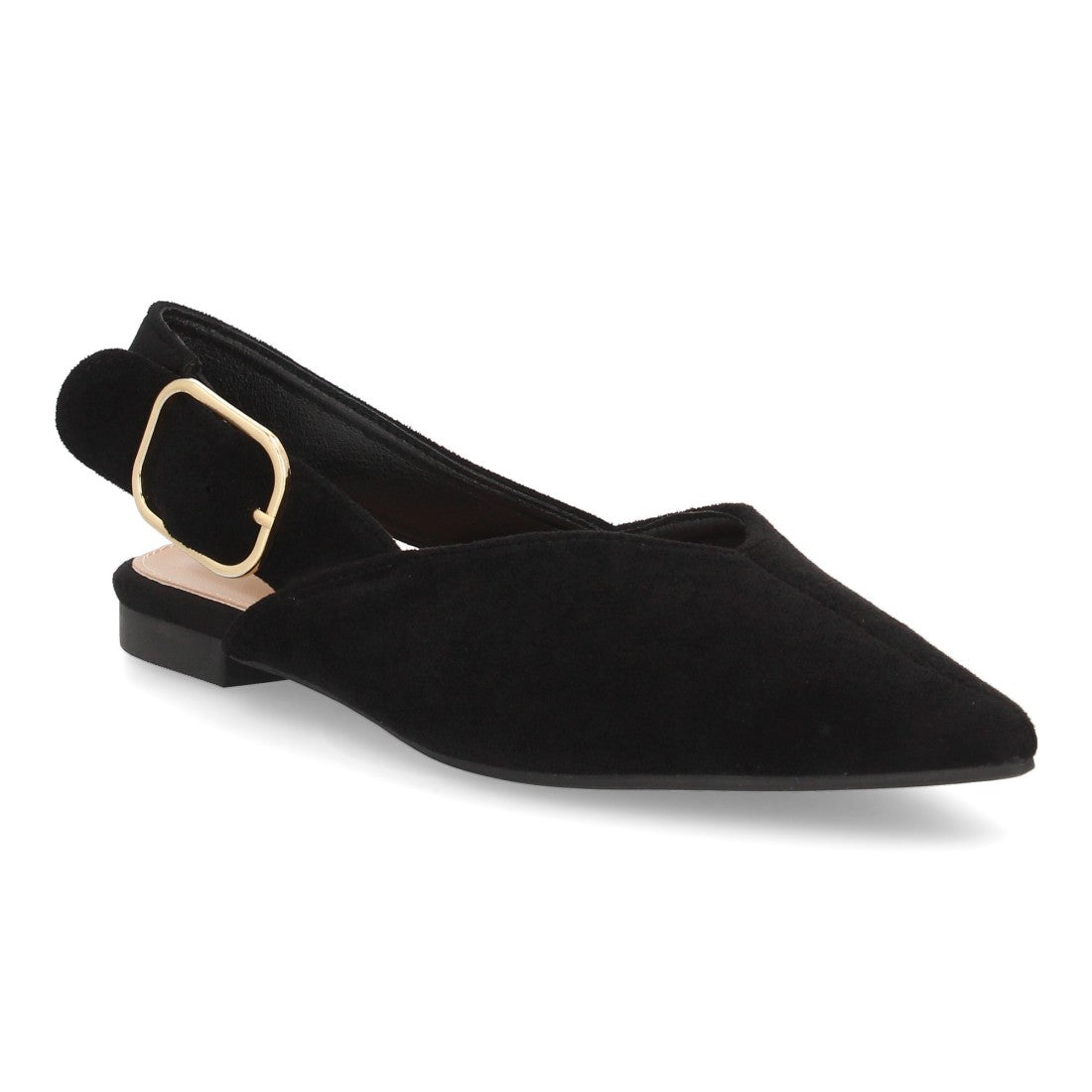 Bailarina destalonada para mujer con diseño de punta fina y hebilla dorada suela plana perfectas para llevar durante todo el día.