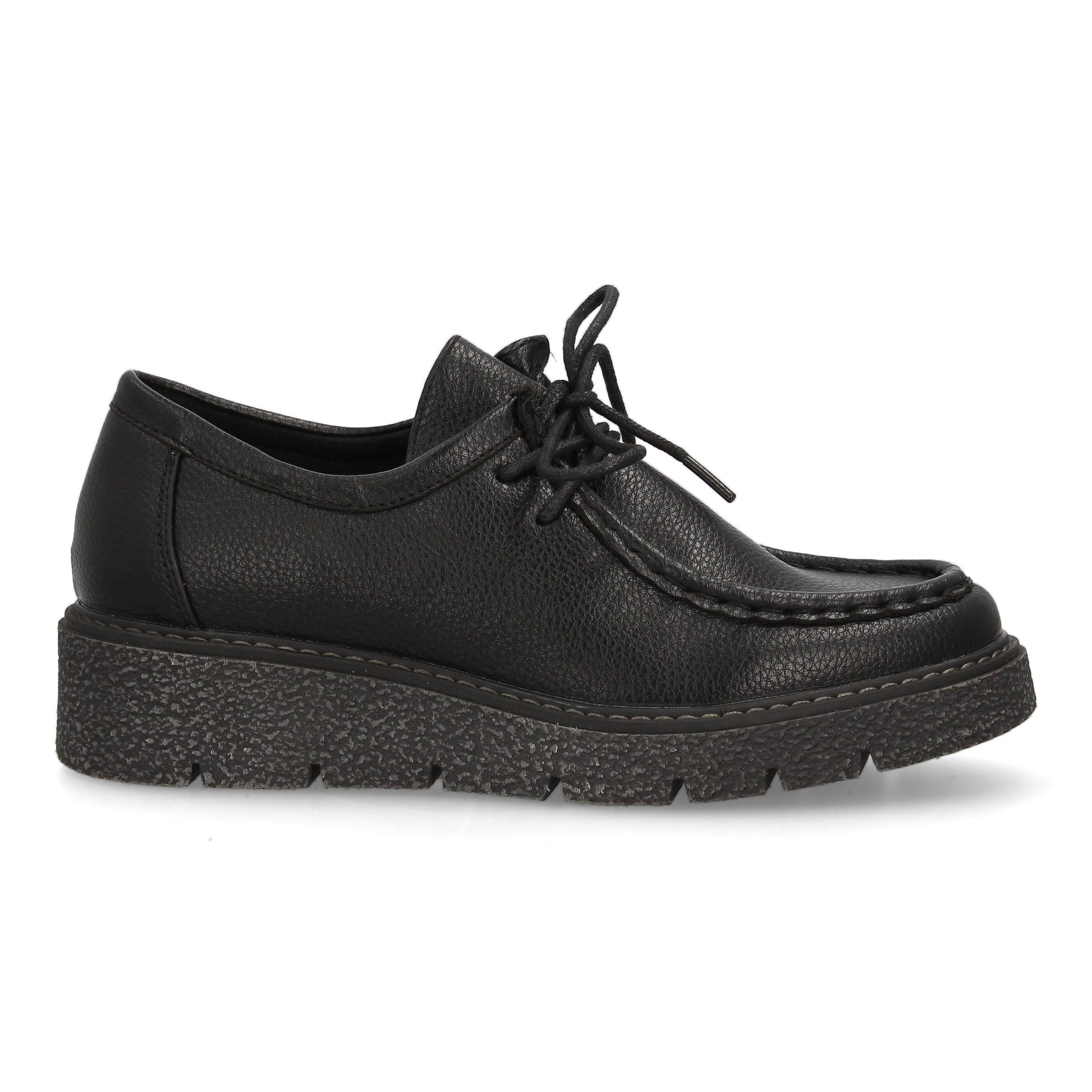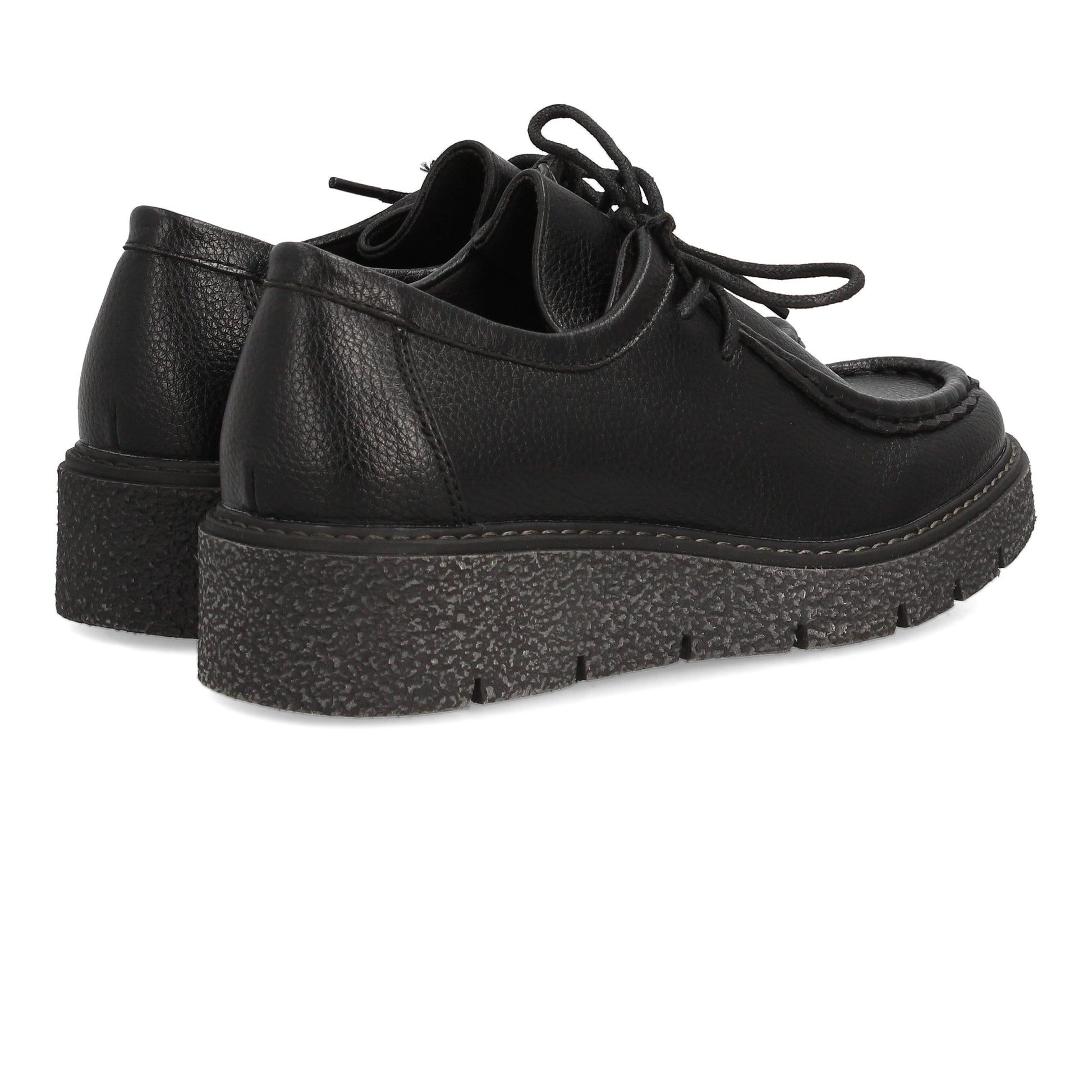 Zapato tipo mocasín con cuña y cordones para mujer. Diseño cerrado y suela gruesa. Ideal otoño invierno.