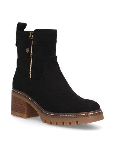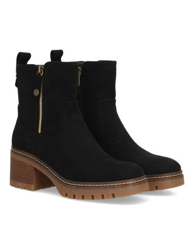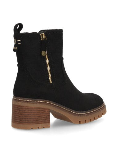 Botín con tacón para mujer con estampado liso cuenta con cremallera lateral que facilita el calce y una suela dentada para los días de Otoño invierno. Tacón ancho cómodo.