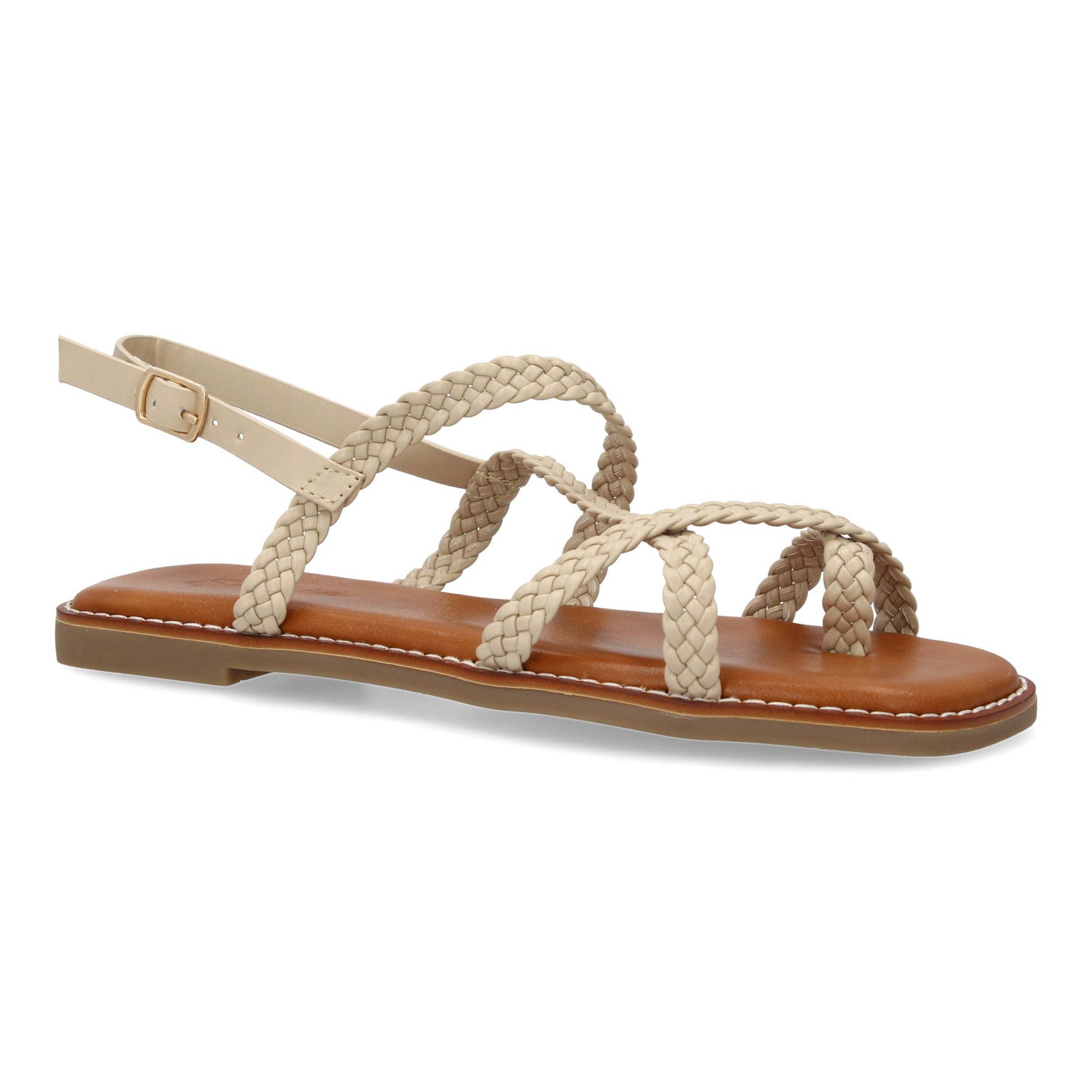 Sandalias planas de mujer elegantes y comodas diseño trenzado con cierre de hebilla ajustables ideales para el día a día.