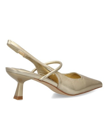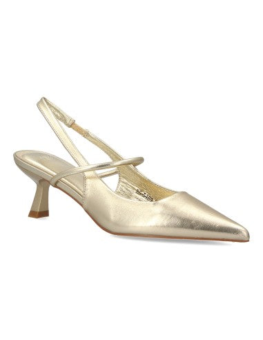 Zapato para mujer de salón con tacón bajo punta fina y tira cruzada. Estampado liso Ideal para looks de oficina o eventos especiales.