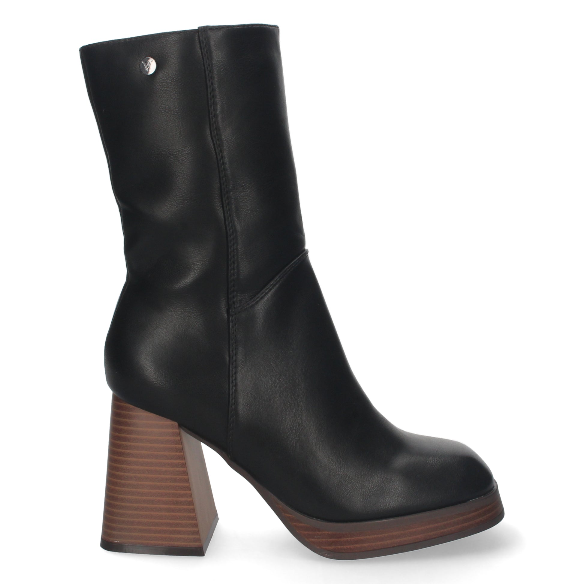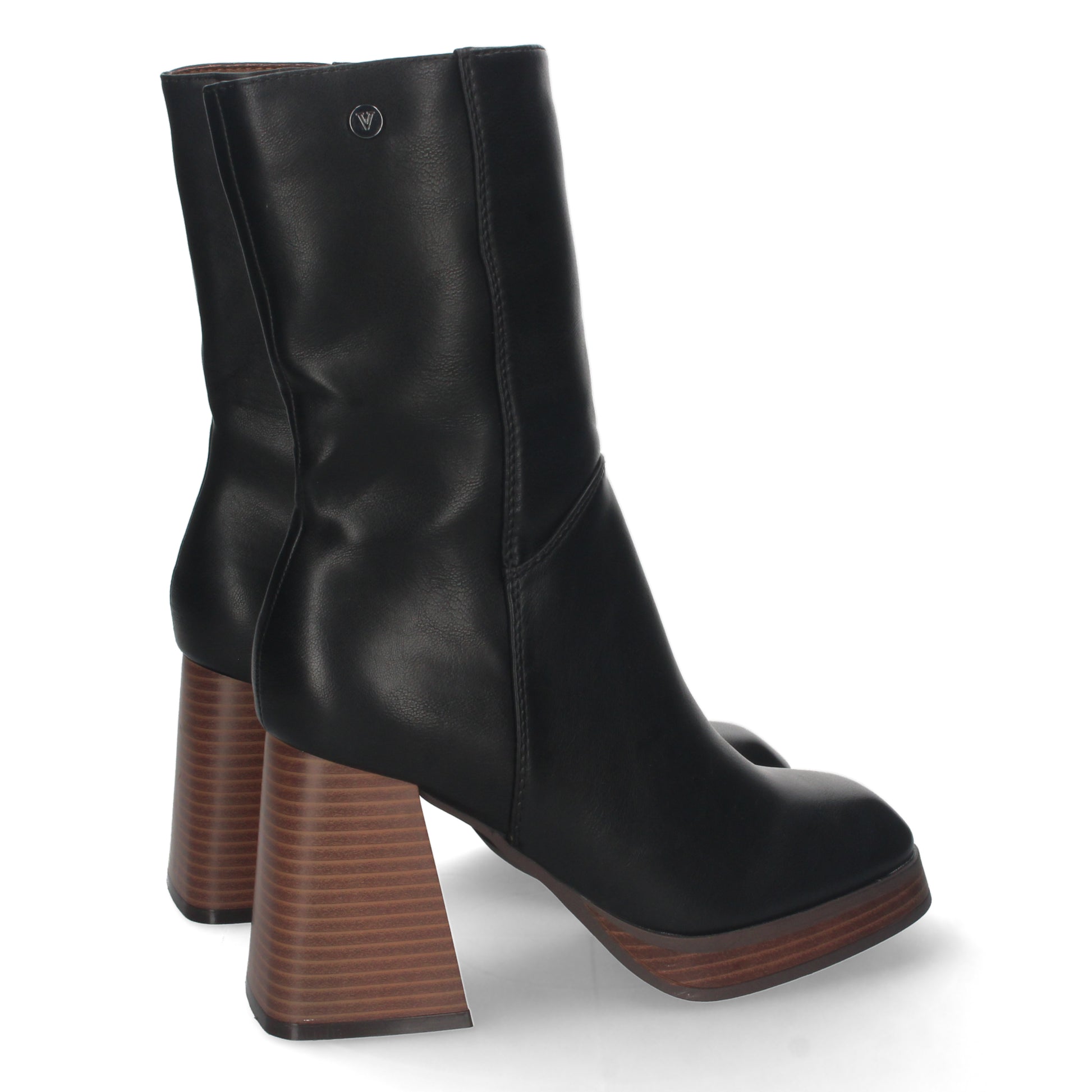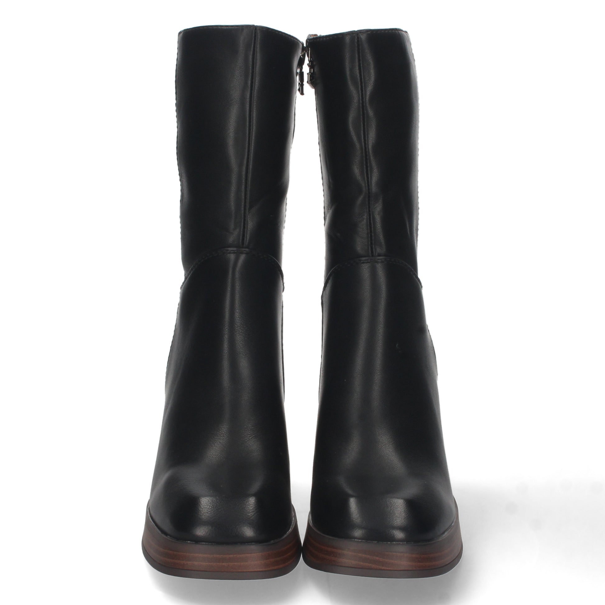 Botin de Tacon Ancho para Mujer con Estampado Liso Tachuela en Caña y Cierre de Cremallera Otoño Invierno
