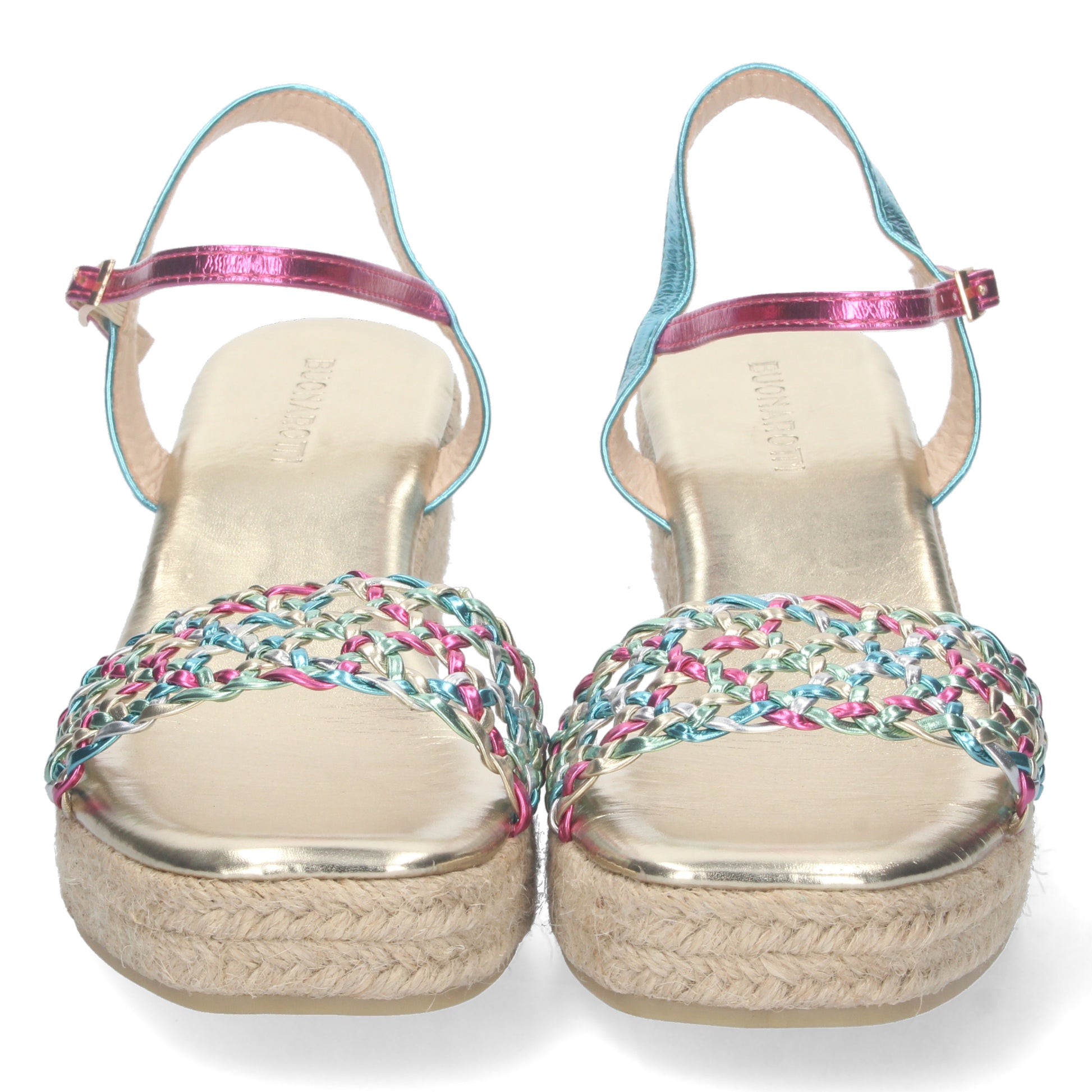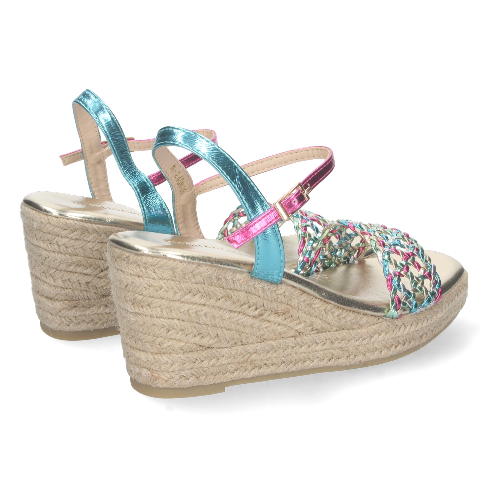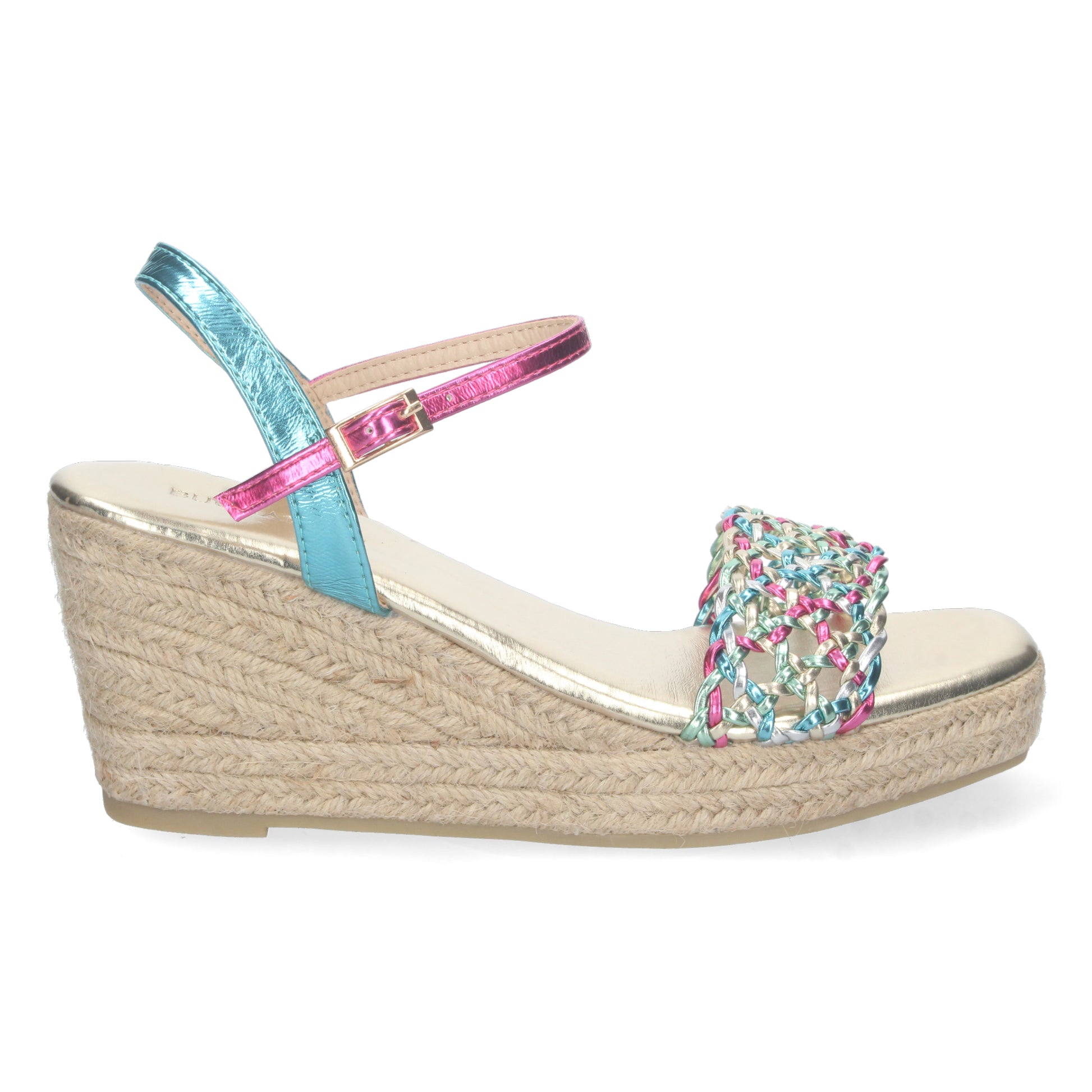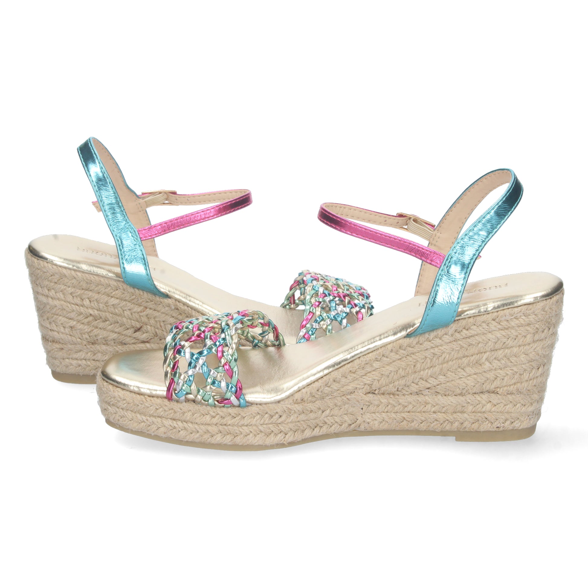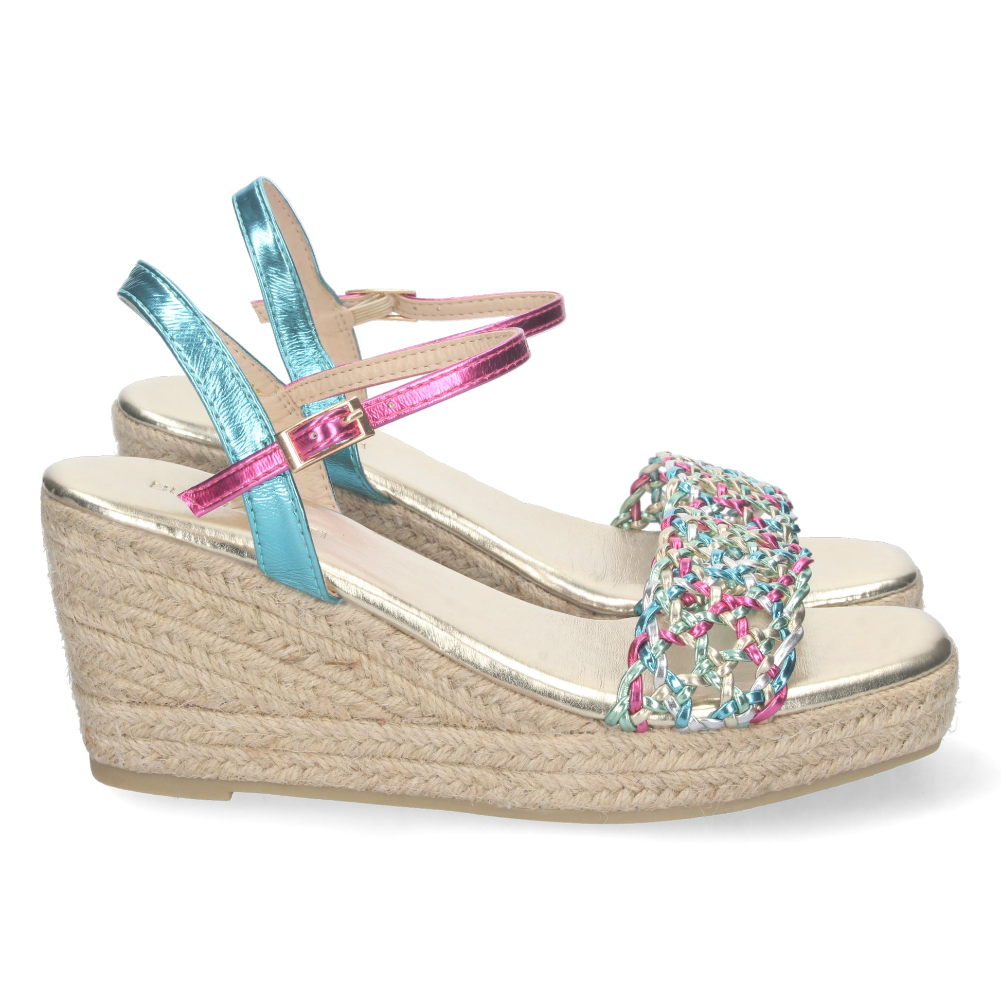 Sandalia de Cuña para Mujer Comoda Forrada de Yute Pala Entrelazada Multicolor y Cierre de Hebilla