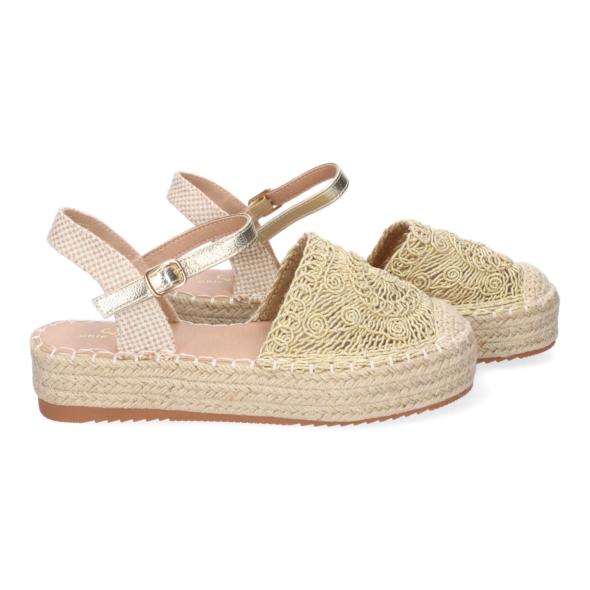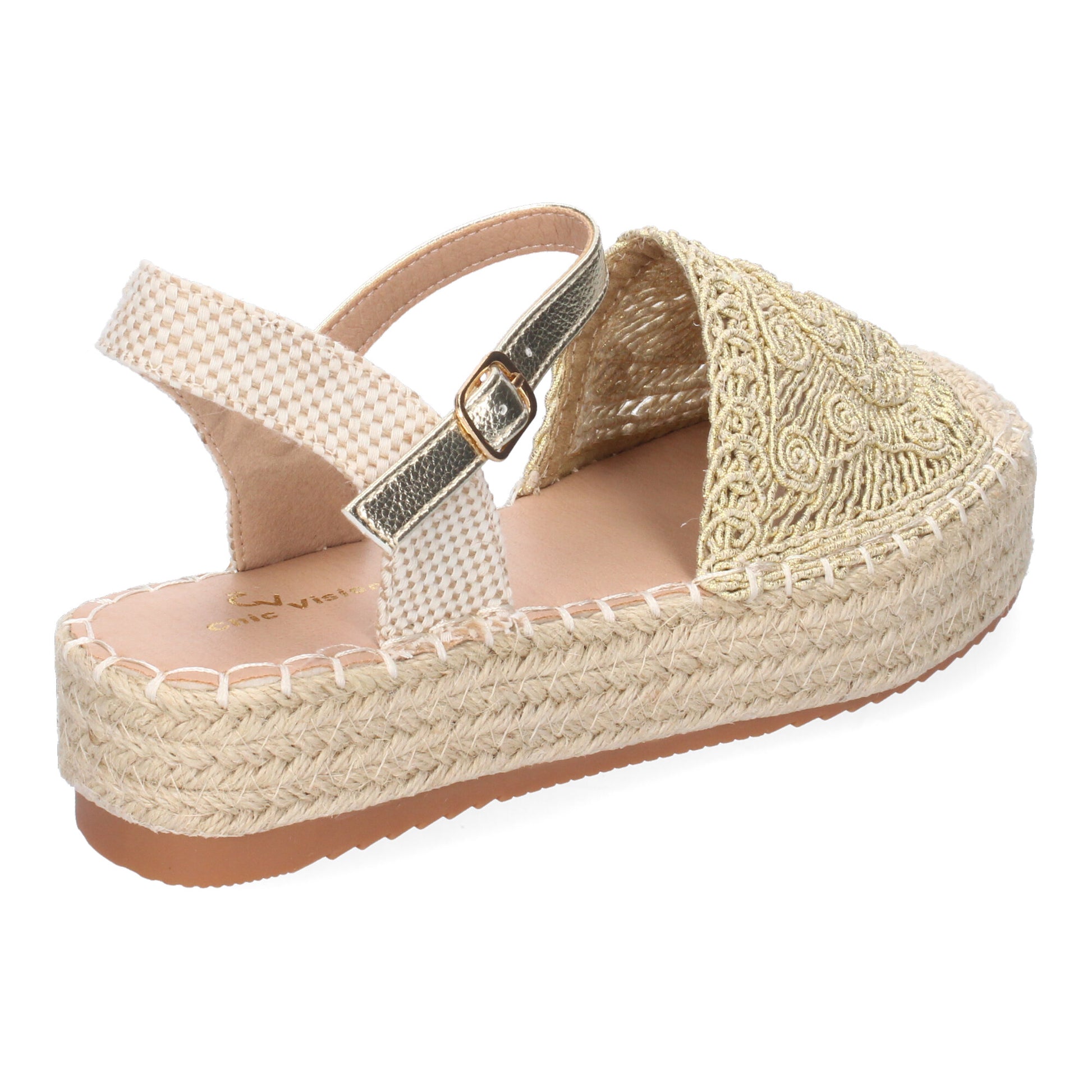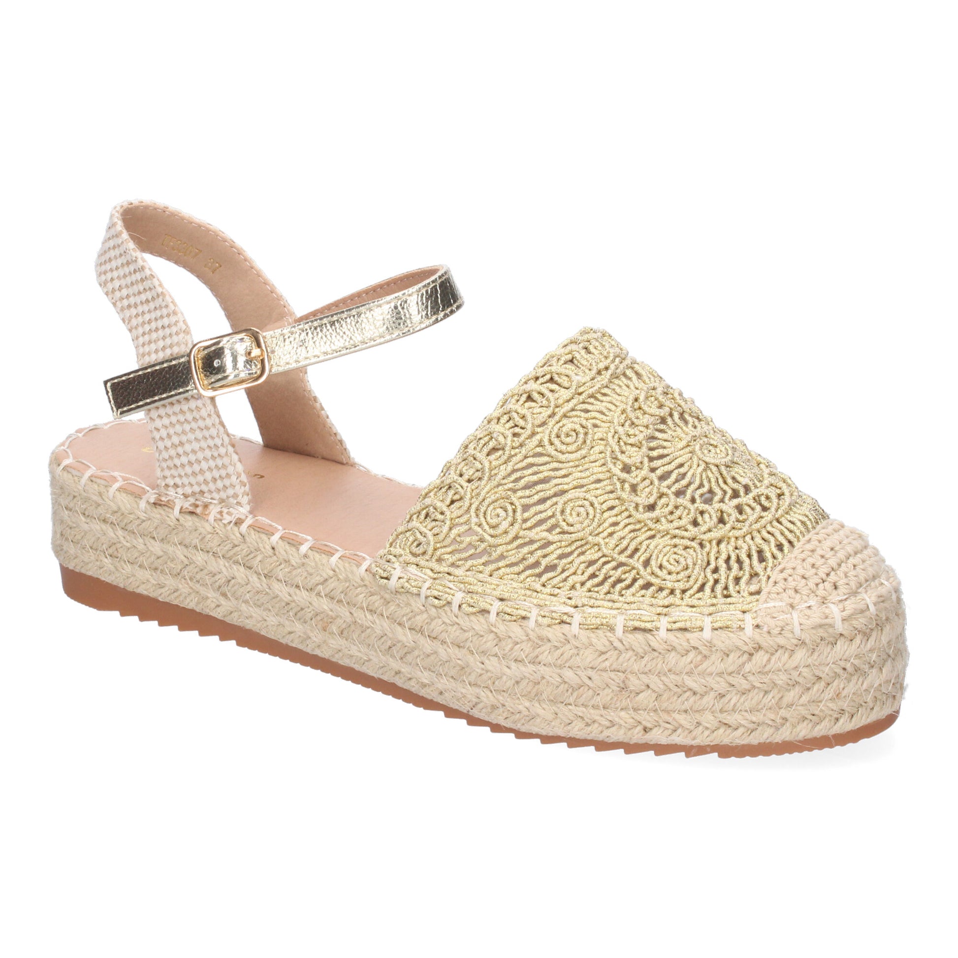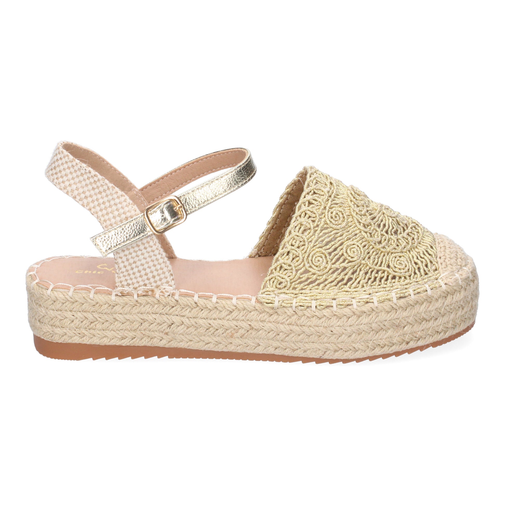 Sandalia de Plataforma para Mujer Comoda Forrada de Yute Pala Cerrada y Entrelazada Talón Abierto y Cierre de Hebilla