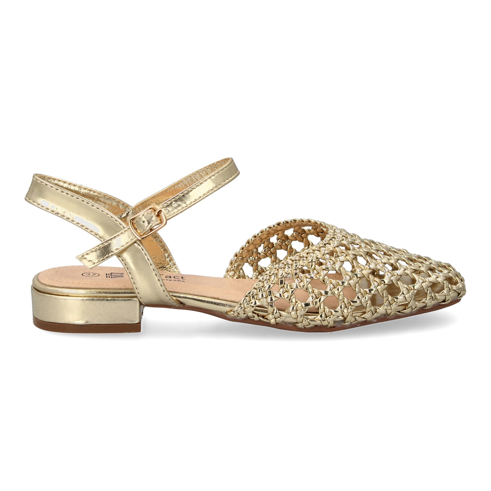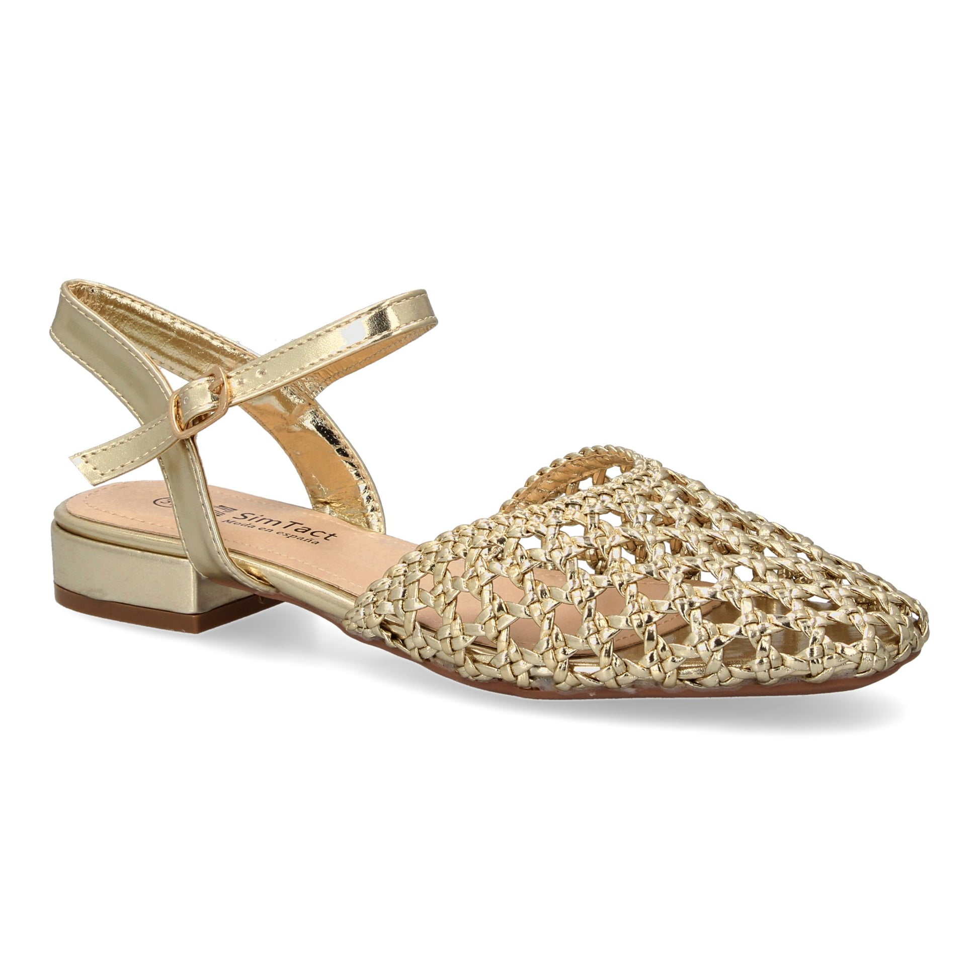 Sandalias planas de mujer comodas y elegantes diseño moderno trenzado en la pala con cierre de hebilla ideales para primavera-verano.