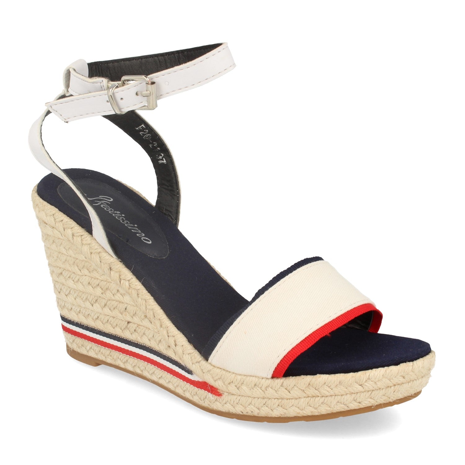 Sandalia de Cuña para Mujer con Pala Fina Talon Abierto Cierre de Hebilla Banda de Nylon en Colores y Piso de Yute Primavera Verano