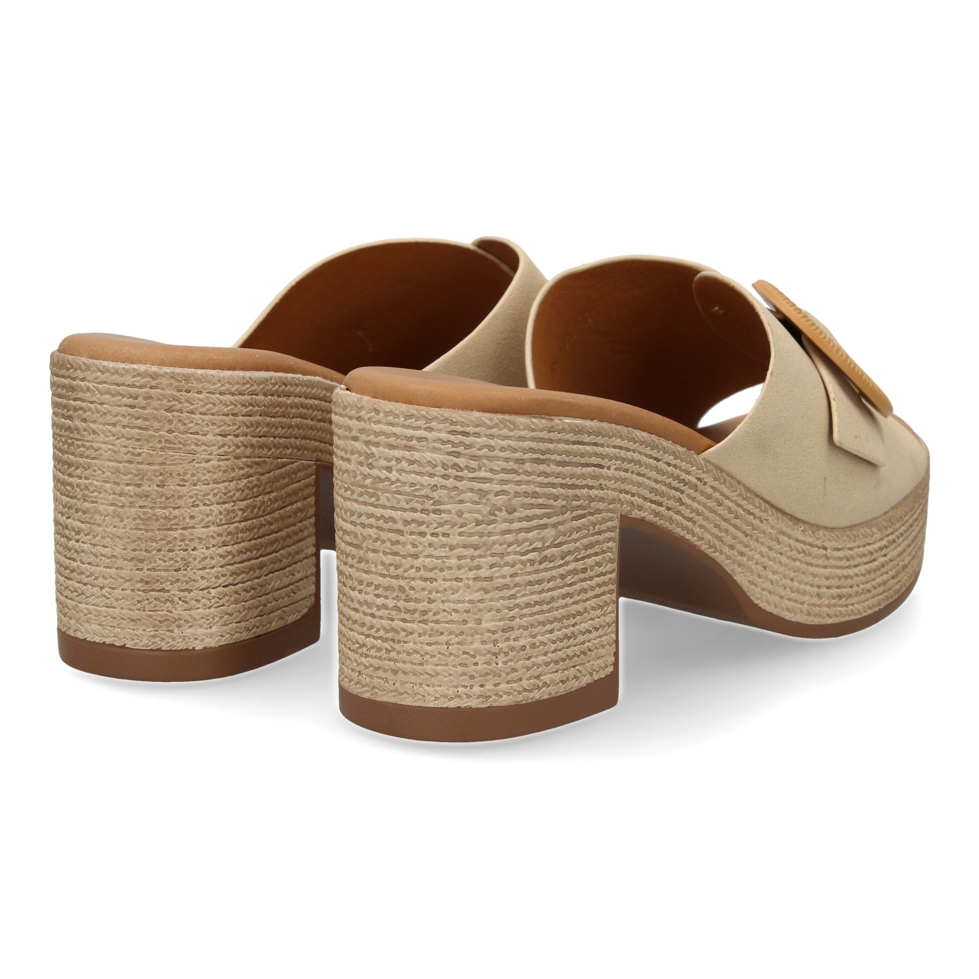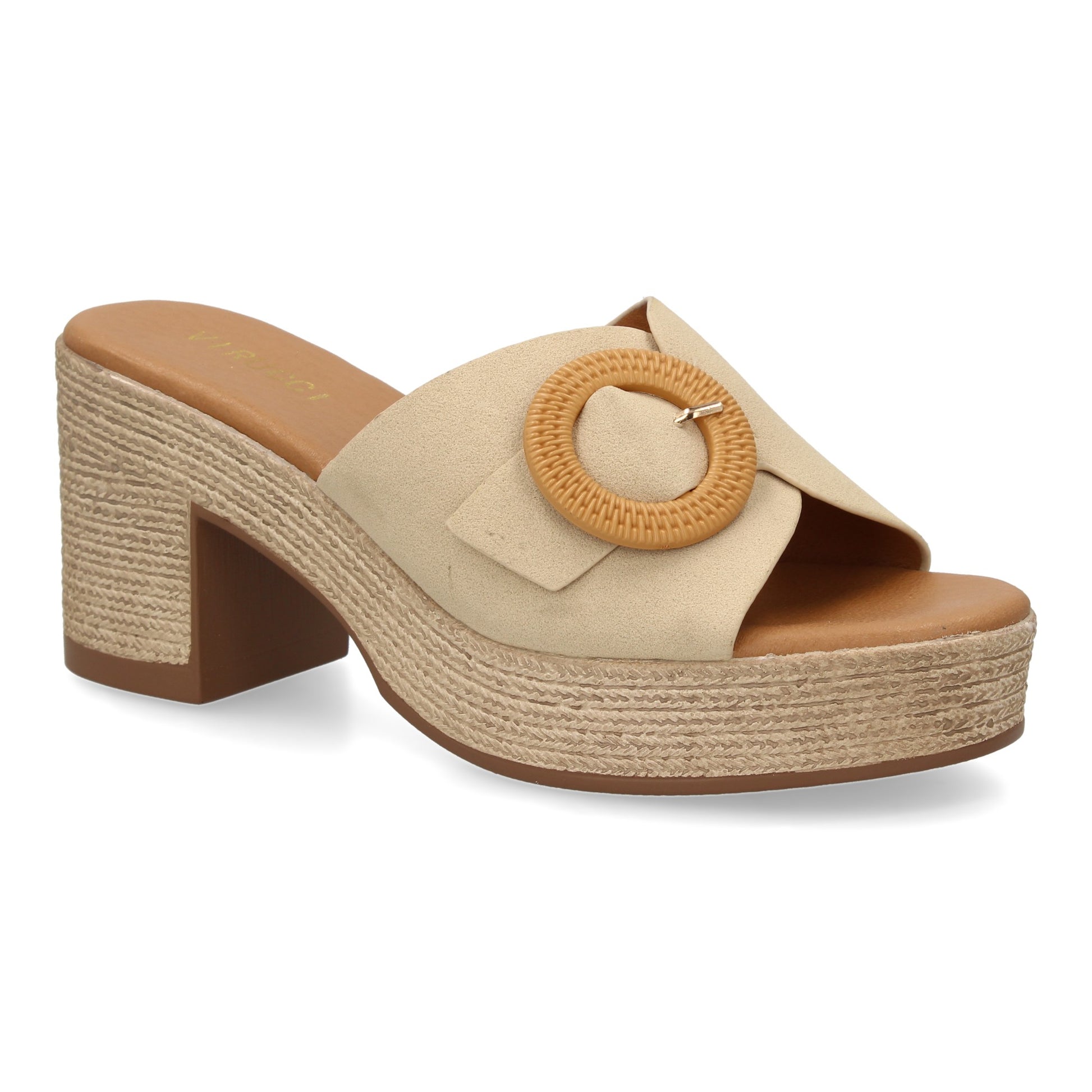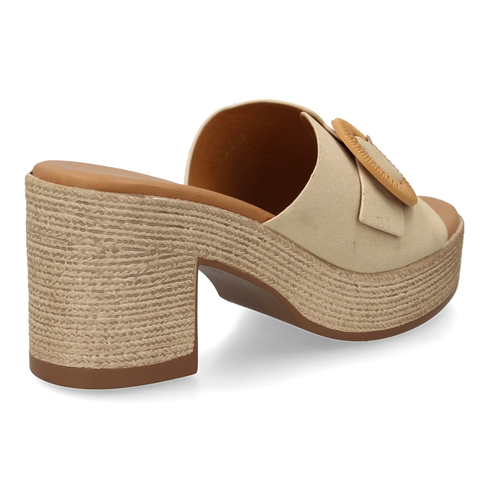 Zueco de tacon comodos y elegantes diseño moderno con hebilla decorativa en la pala ideales para primavera verano.