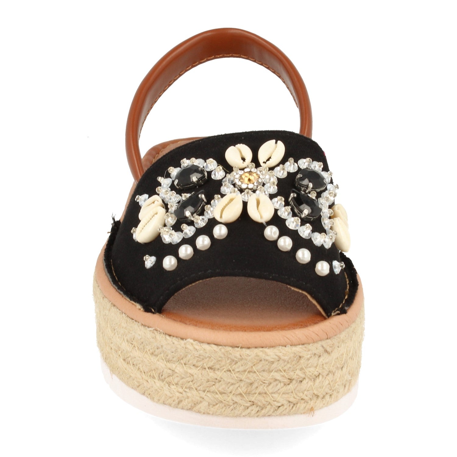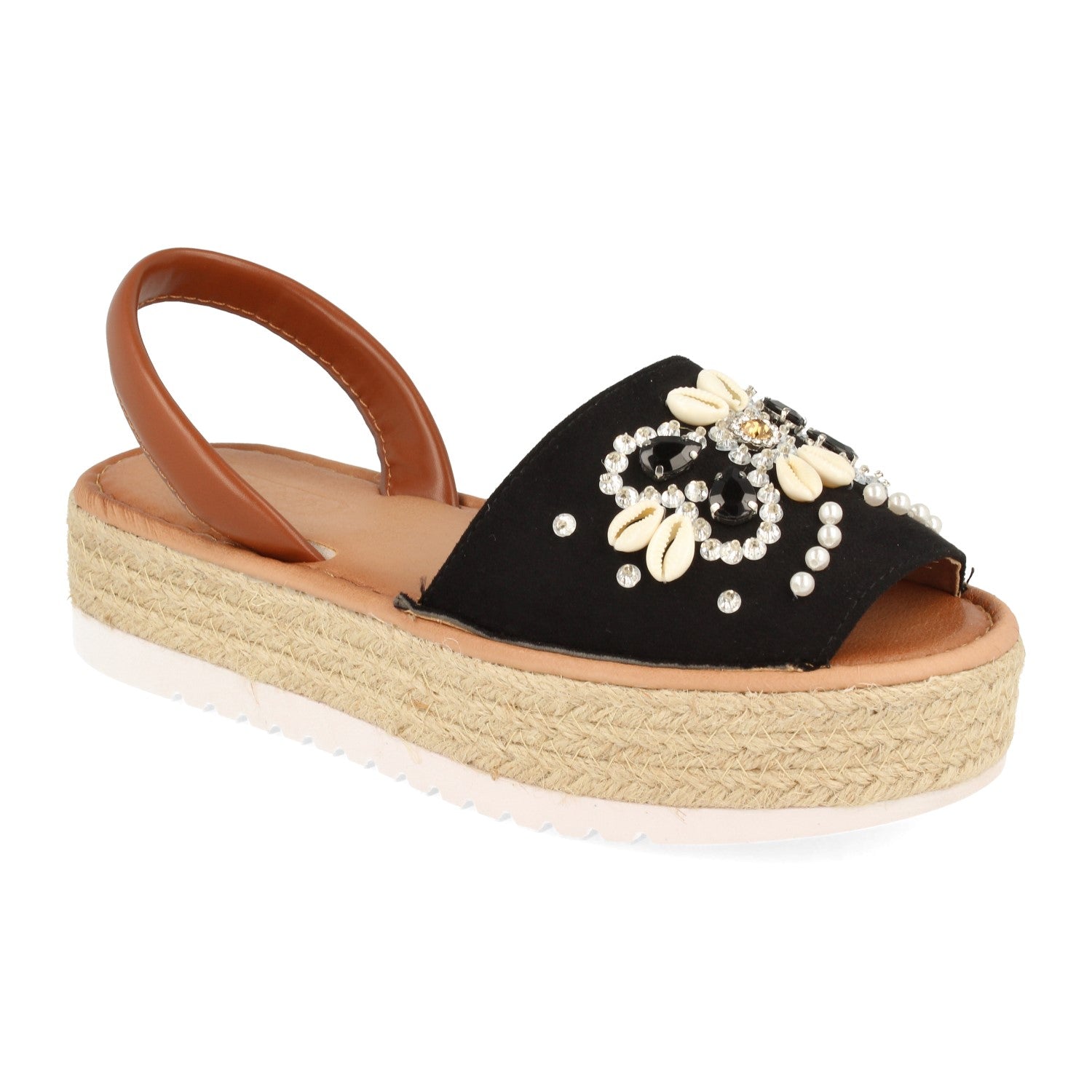 Sandalia de Plataforma para Mujer con Yute Pala Ancha Adornada con Conchas y Piedras Brillantes Talon Abierto Primavera Verano