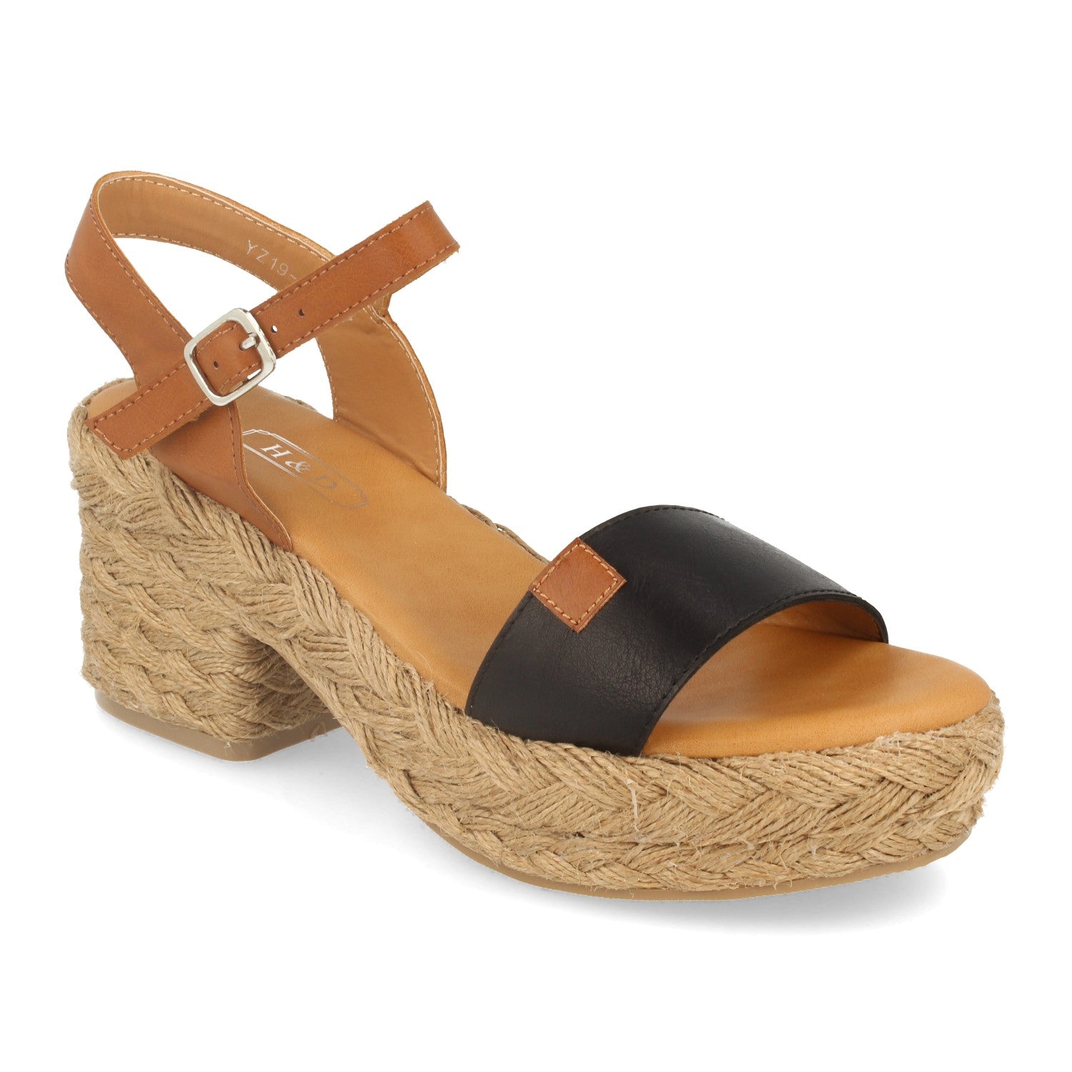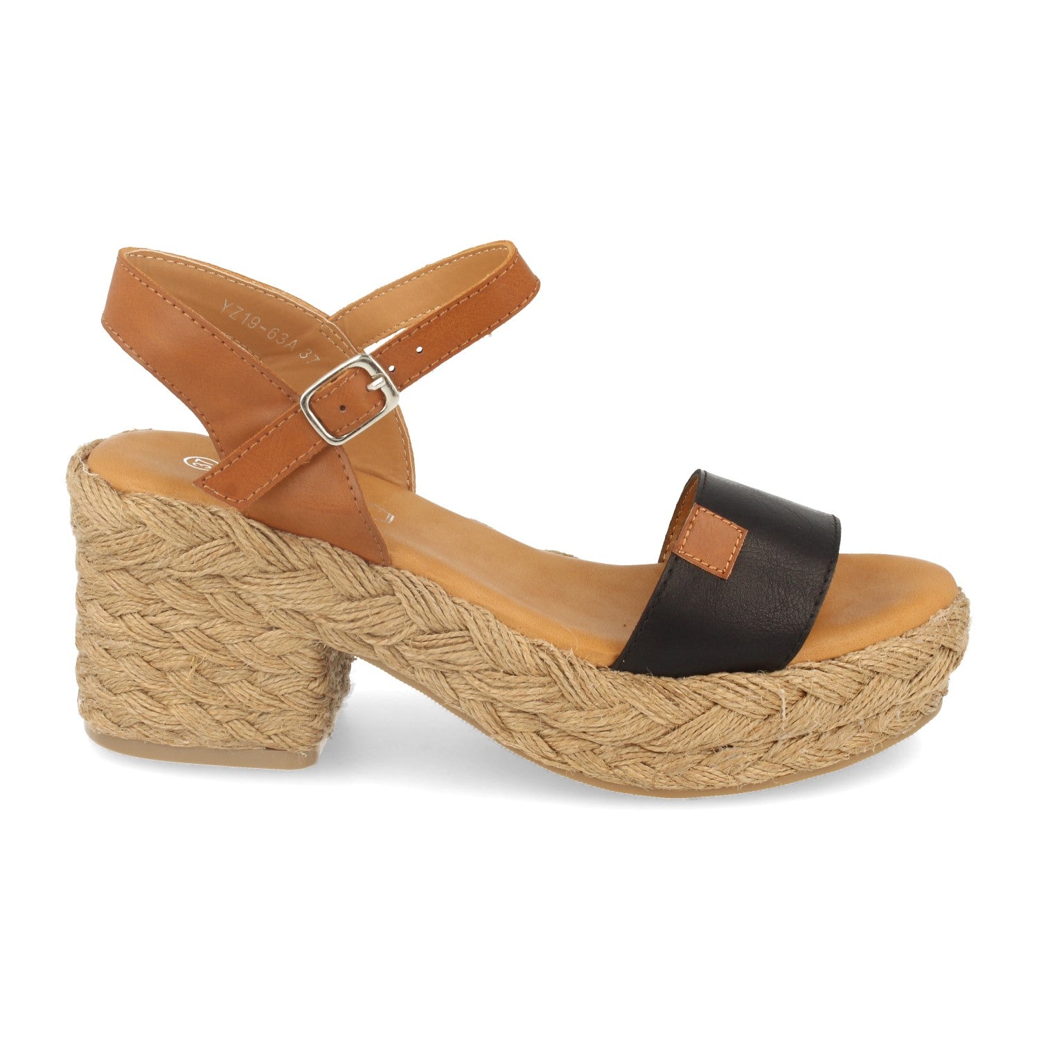 Sandalia con Tacón y Plataforma de Yute Estilo Ankle Strap Adorno en Pala y Cierre de Hebilla Primavera Verano